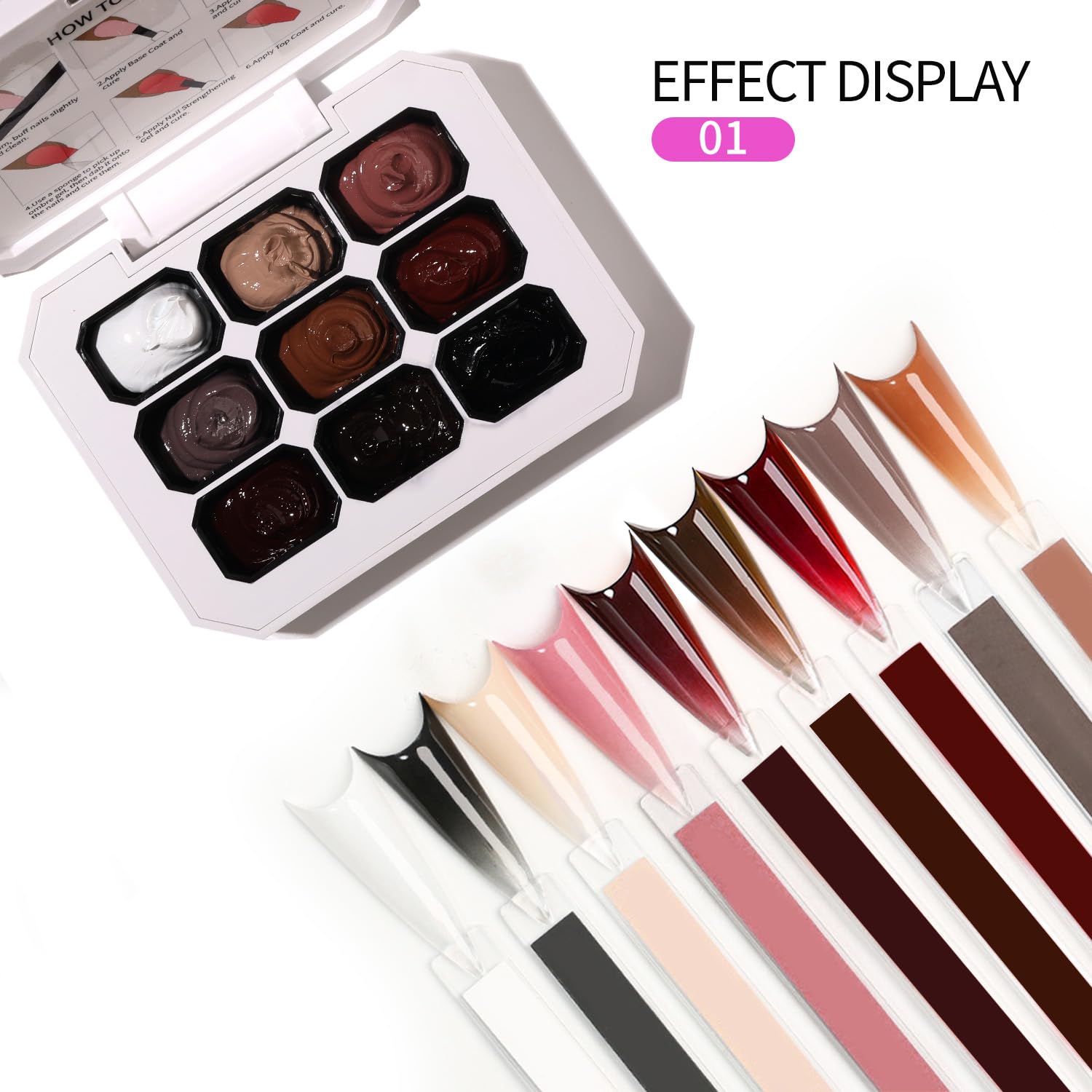 • [Soft blush gradient effect]:The patting gel has 9 highly saturated color combinations, the nail polish palette easily create a natural "blush" effect through sponge superposition, the gel ombre color creating a hazy and soft sense of fingertip, the ombre gel polish suitable for vacation, daily commute, dating style.