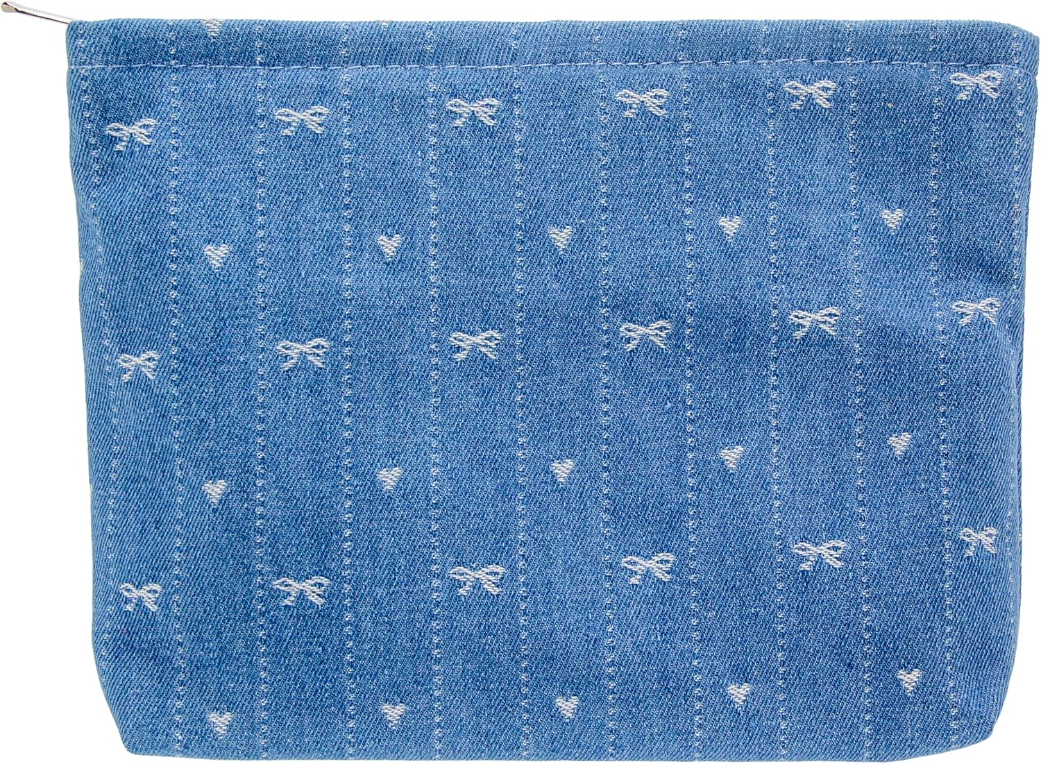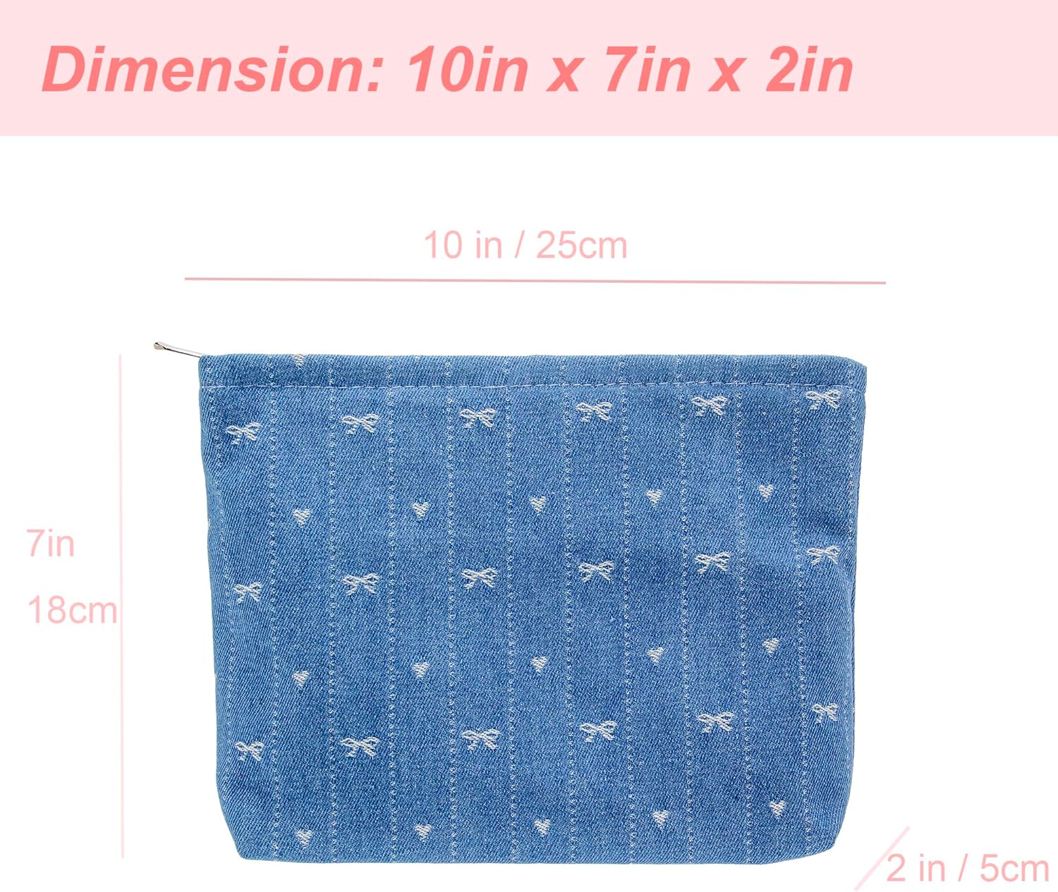 PAZIMIIK Makeup Bag Large Cotton Zipper Pouch for Purse Travel Canvas Make Up Organizer for Women Cosmetic,Jean Blue
