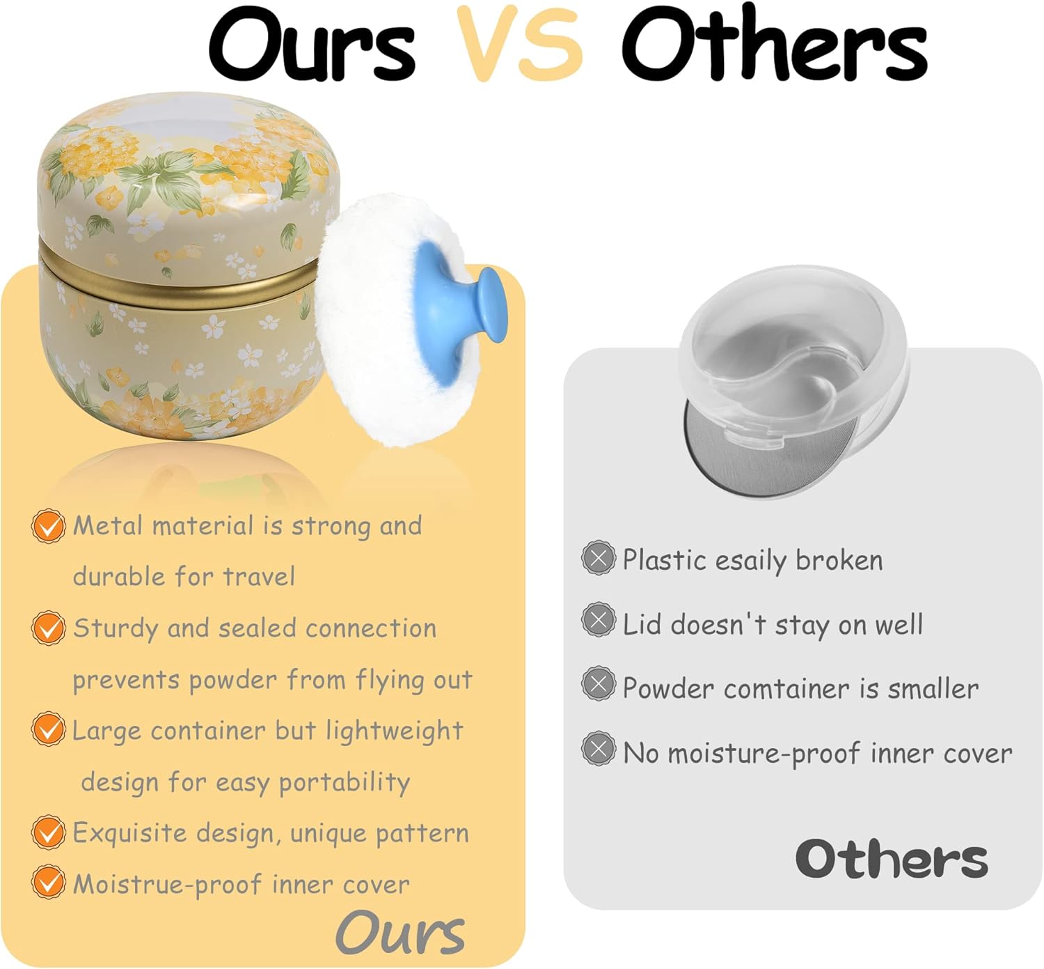 WEMEGA Body Powder Case with Powder Puff Powder Container Tea Box for Baby and Women Powder Puff and Powder Case for Travel (Yellow Flower1)