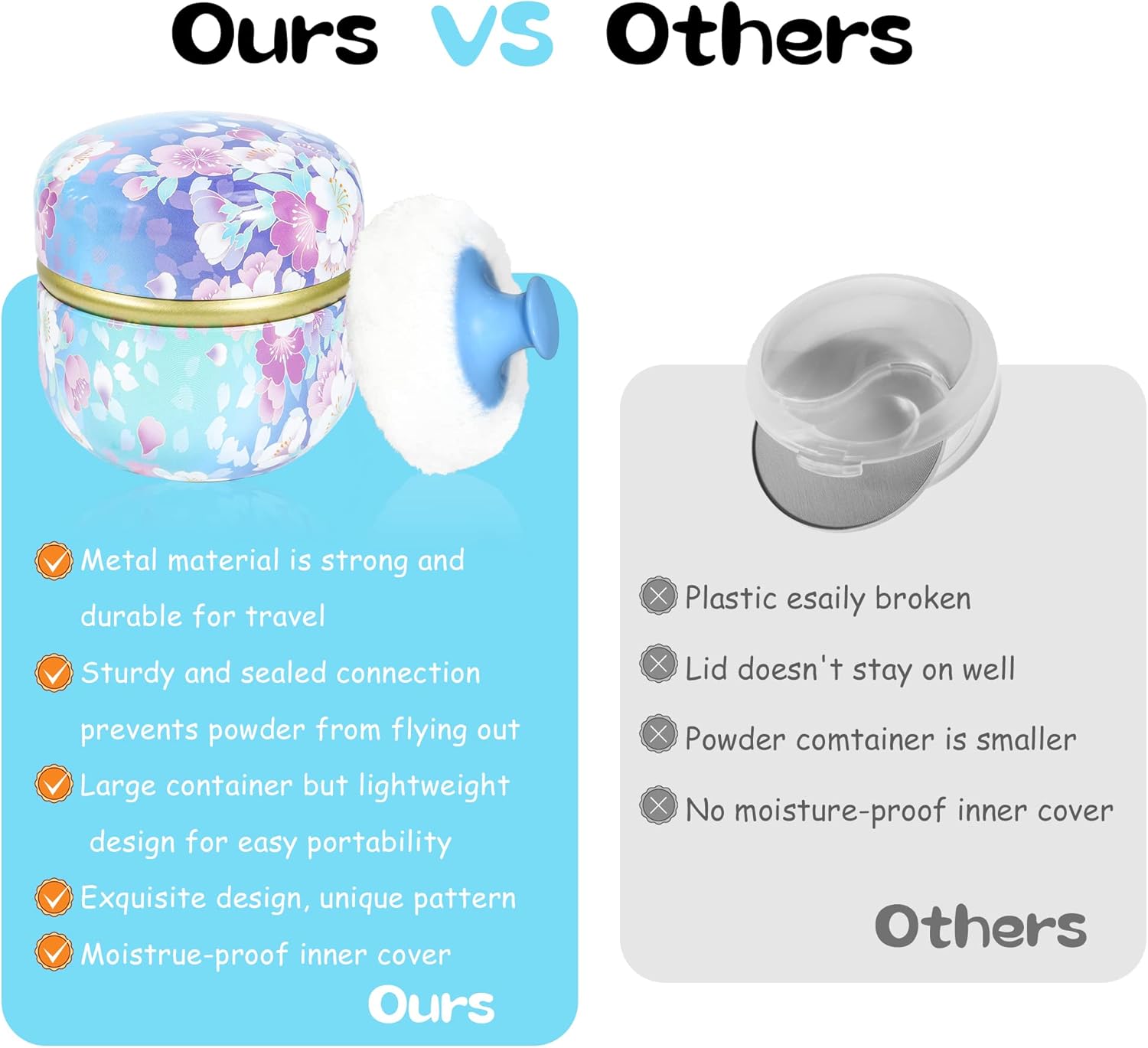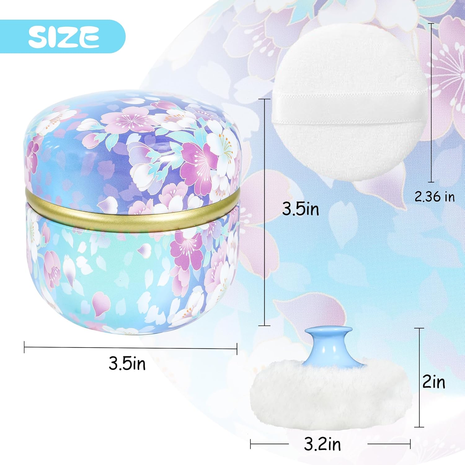 WEMEGA Body Powder Case with Powder Puff Powder Container Tea Box for Baby and Women Powder Puff and Powder Case for Travel (Flower Blooming1)