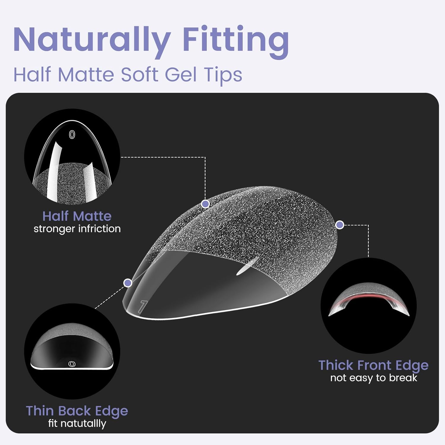 • 0 Pressure Breathable Feeling - Wilfniee Medium almond shaped nail tips designd with “ Thin back edge, thick front edge”for natural fit effect. The thinner back edge can make the soft nail tips fit your nails better, which will not make you feel uncomfortable. Also, the clear nail tips are more breathable, which will not cause burden and pressure on your fingers; The thickened front edge makes it not easy to break or bend for last long time use. Just like grows on you, prefect fitting