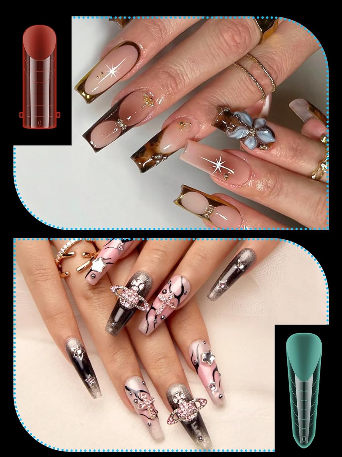 • 【Sturdy No C Curve Gel Nail Forms】Reusable extra long nail molds are made with high quality material, which is strong, tough, and reusable, providing you with a different lengths nail art experience that lasts.This artificial nails forms protective sleeve has a small handle on both sides, which is convenient for constructing gel nail extension nails, and will not stick to your hands, and can be easily removed after application.