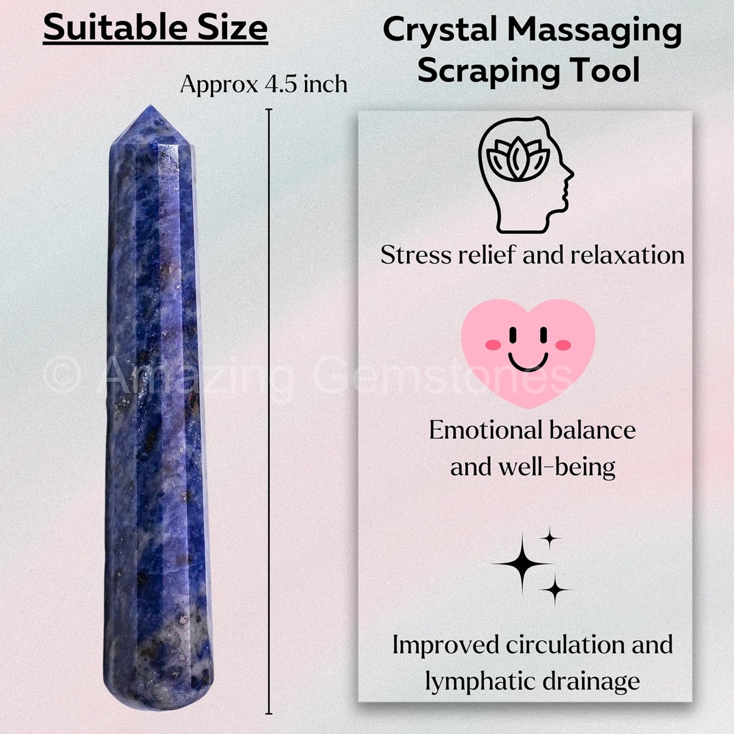 Amazing Gemstone Sodalite Crystal Wand Massage Stick - Pelvic Wand Gua Sha for Adults - Crystals and Healing Stones Massage Wands for Adults Gifts (Pointed)