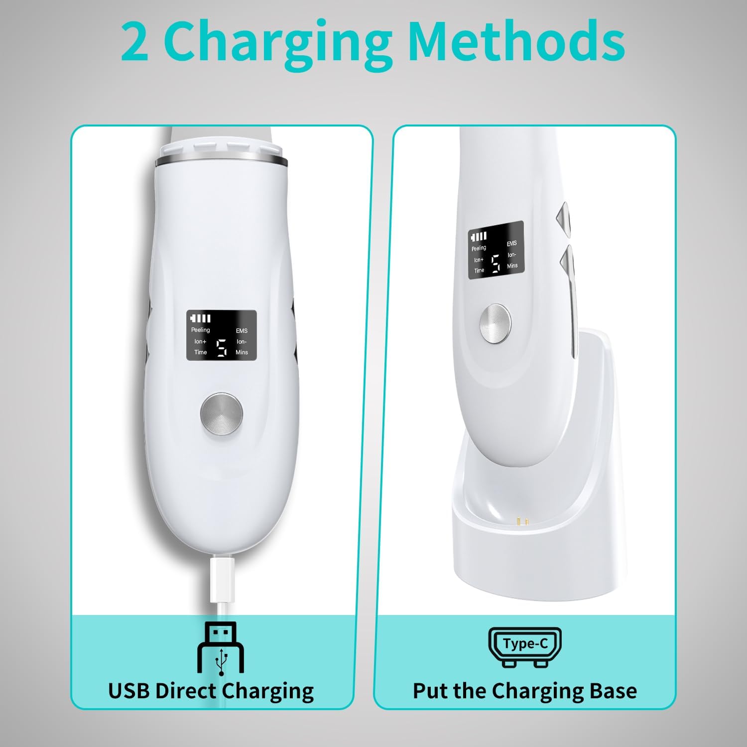 • 【Dual Charging Options & LED Display】Charge the spatula either on its base or directly via USB. The LED display shows battery life and operational mode, giving you the flexibility you need for your skincare routine. (Note: For safety, do not use while charging.)