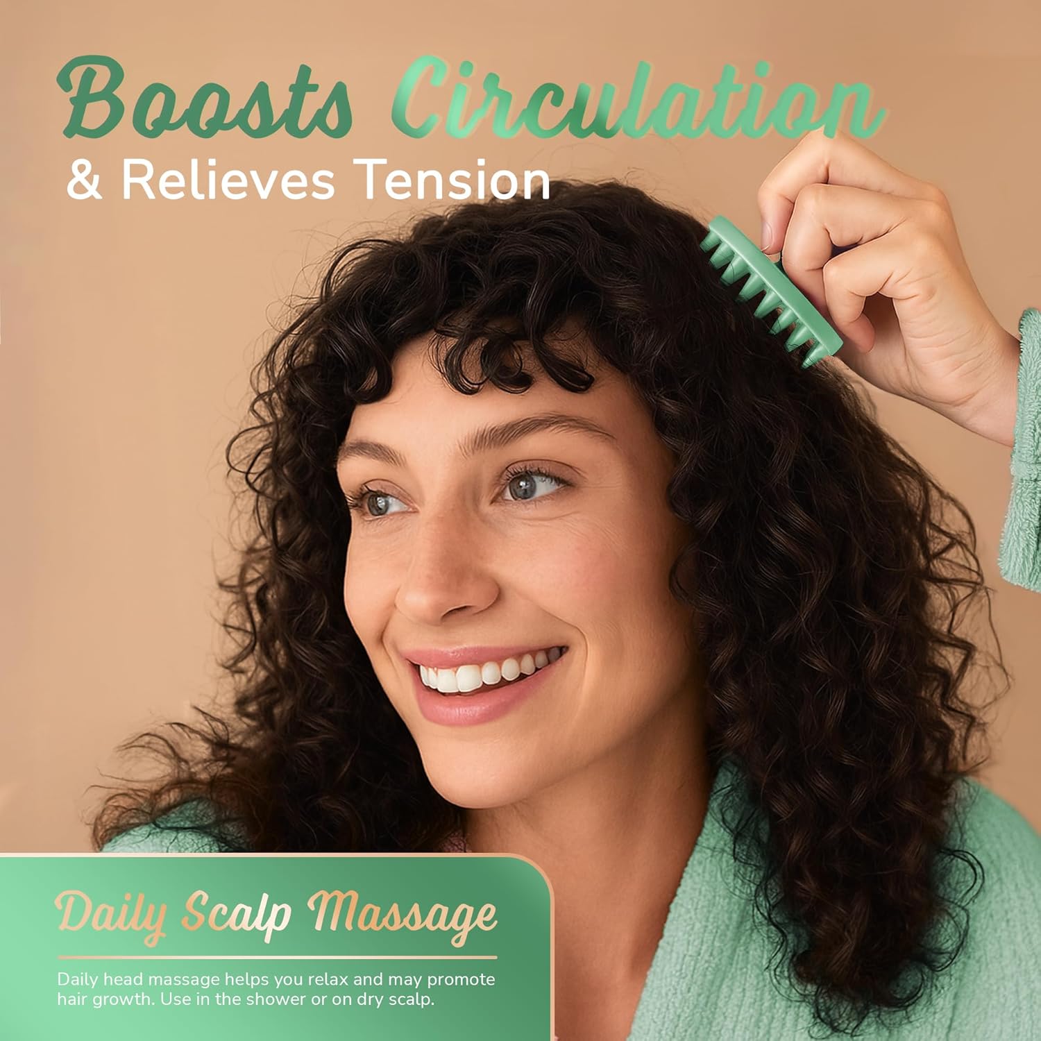 Silicone Scalp Scrubber - Massage Shampoo Brush, Soft Bristles for Hair Growth & Dandruff Removal - Ergonomic Design, Wet & Dry Use, Deep Cleansing Scalp Exfoliator for All Hair Types - Green