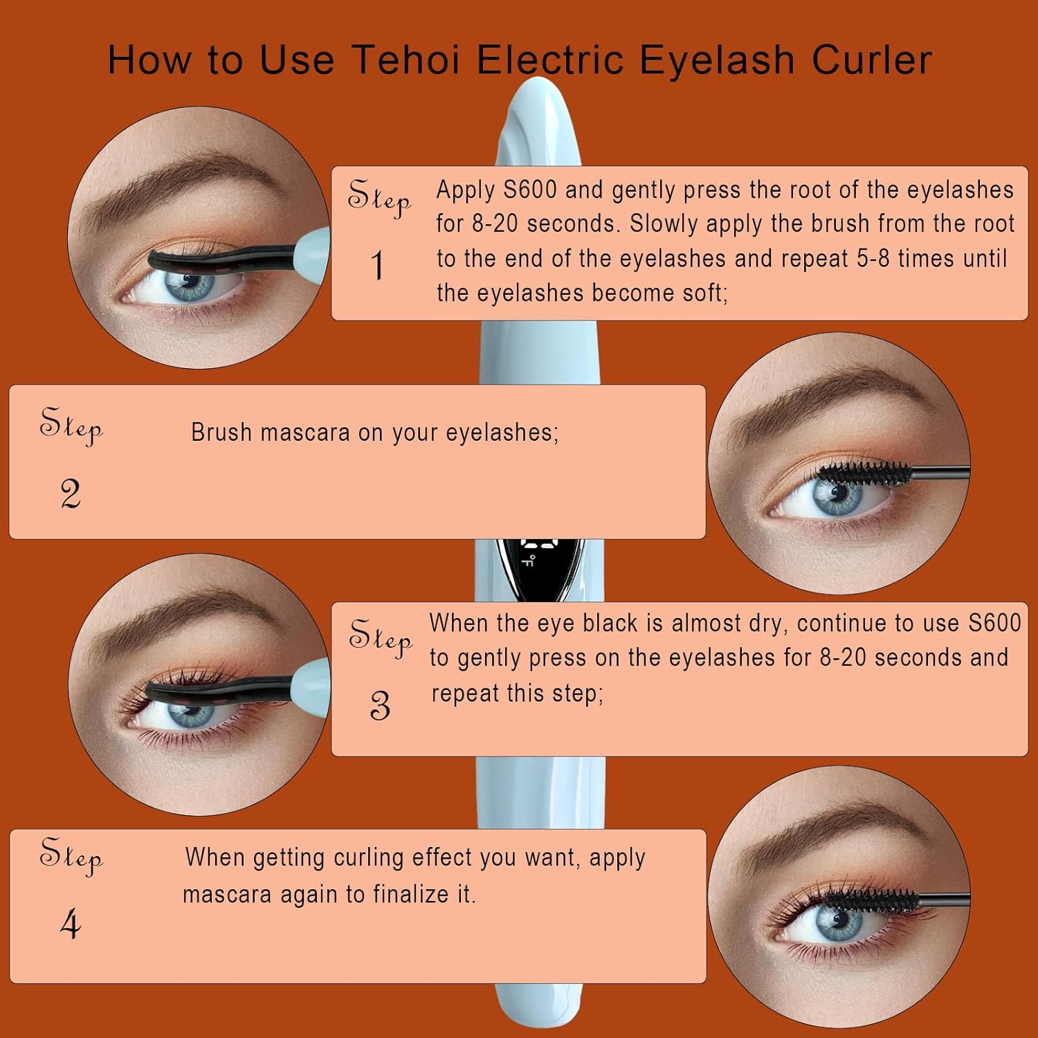 • 【Rapid Heating & Natural Long-Lasting Curls】Heated Eyelash Curler – Ditch clunky traditional curlers! Our heated eyelash curler heats up in just 10+ seconds—no tedious waiting, ideal for quick eye makeup prep. Its uniquely curved head fits your eye’s natural contour, quickly shaping flawless natural curls to enhance your look. Need more definition? Simply increase the temperature for better results, no lash damage. Pair this eyelash curler heated with mascara: it effortlessly separates lashes to avoid clumping, locking in a 24-hour long-lasting natural curl. From morning commutes to evening outings, your lashes stay perfectly curled, giving you a stunning, eye-catching gaze all day.