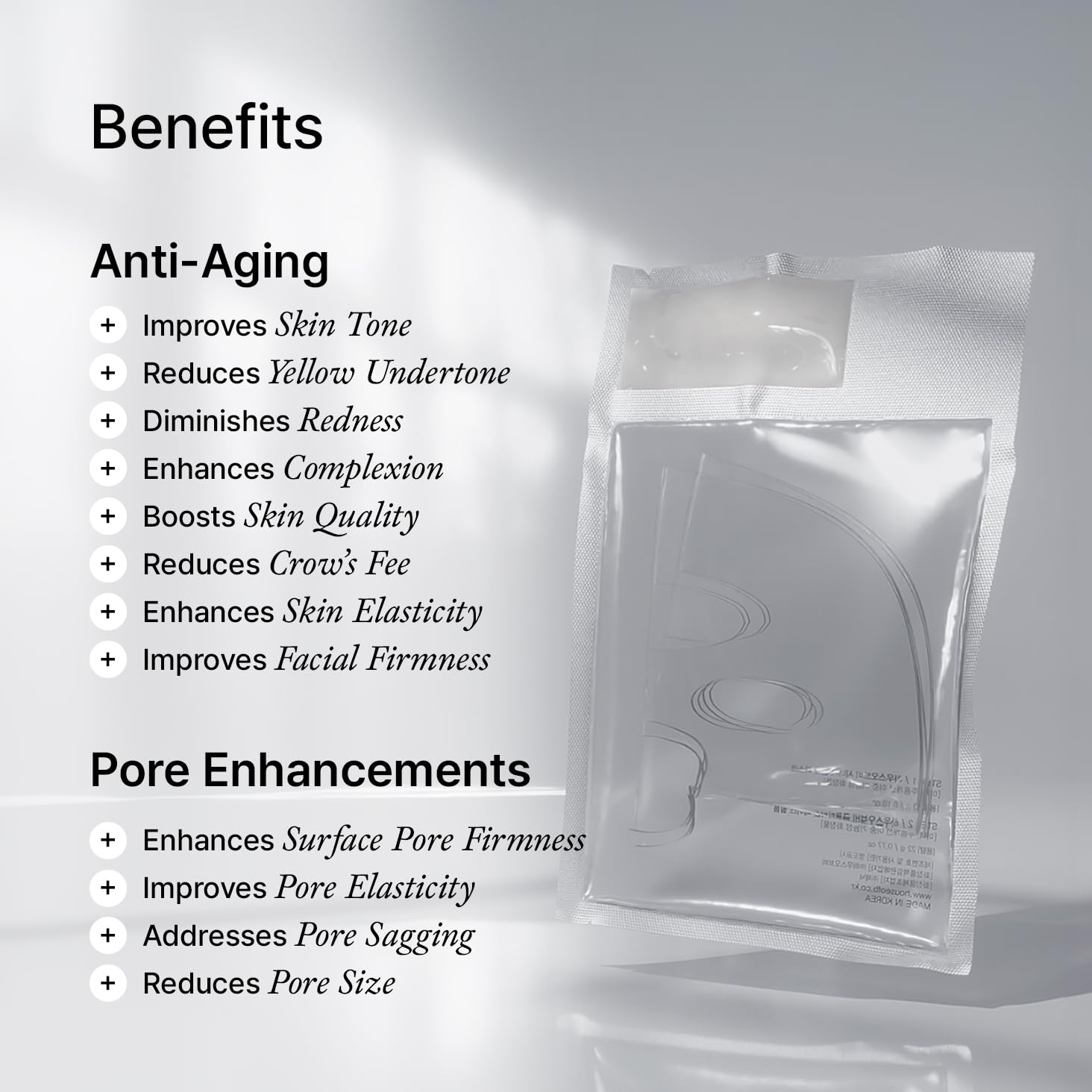• Dual-Action Absorption Film: A two-step process combines a plumping ampoule with a patented film designed to adhere seamlessly to the face. The unique film enhances absorption, deeper hydration, and maximizes delivery of active ingredients.