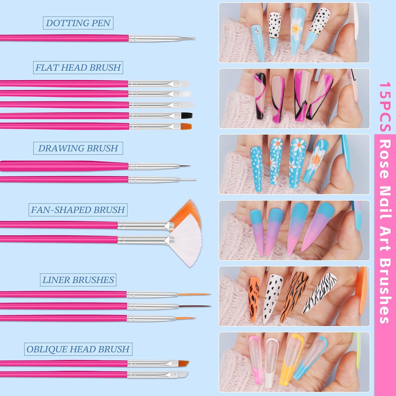• Professional Nail Design Tools: This brush head is made of microfiber bristles, easily outline fine lines and gradient halo. The handle comes in ABS frosted material and designed to fit the curvature of the hand, suitable for novice practice and professional level coloring. It also includes popular brush types such as gel nail brush, liner brush, drawing pen brush and so on, which can easily cope with the needs of all scenarios such as building up, applying rhinestones, French edges, unlocking DIY nail design in one box.