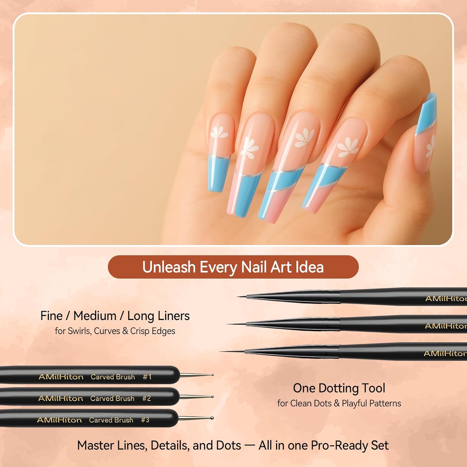 • Professional Nail Art Brush Set: Includes 8 different nail art brushes for painting, carving, extension, French tips, and more to meet various nail art needs