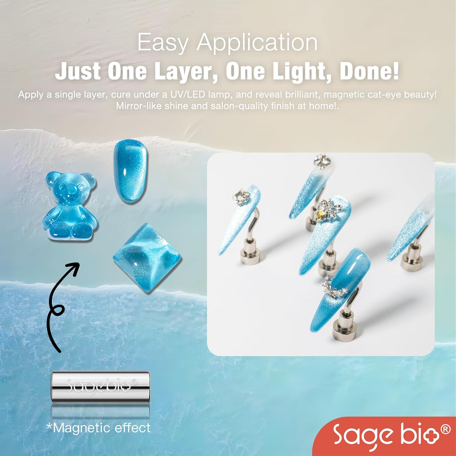 • Multifunctional Formula: SAGEBIO’s Cat Eye Gel Nail Polish combines both the base and color in one easy-to-use formula. No need for additional base or top coats, streamlining your nail art routine.