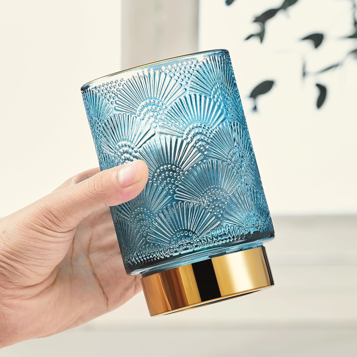 • Exquisite Design: Made of high-quality glass and a golden metal base.Its exquisite striped design on the glass body, complemented by the metal gold plating on the bottle mouth's top edge,sturdy and stylish.