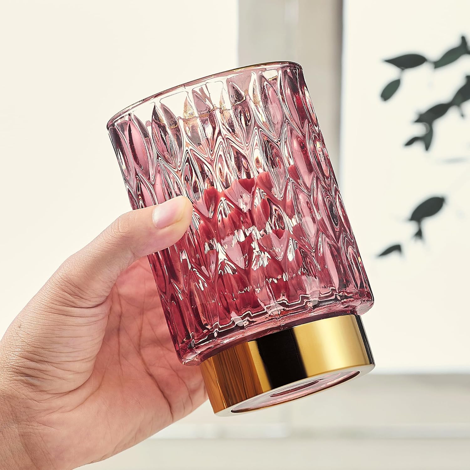 • Exquisite Design: Made of high-quality glass and a golden metal base.Its exquisite striped design on the glass body, complemented by the metal gold plating on the bottle mouth's top edge,sturdy and stylish.