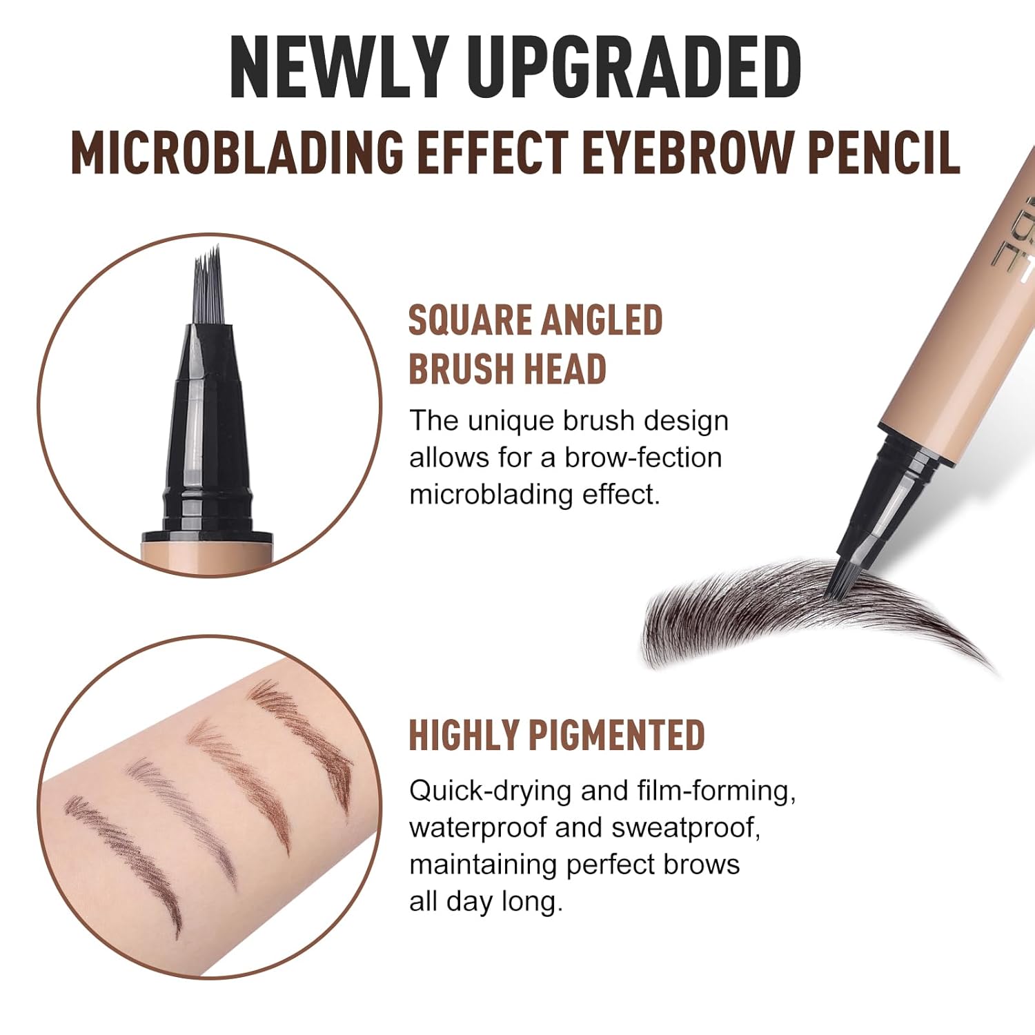 • ✔Easy to Use – Perfect for Beginners & Pros: Draw hair-like strokes by lightly sweeping the tip across clean skin in the direction of hair growth. Build up as needed for bolder definition