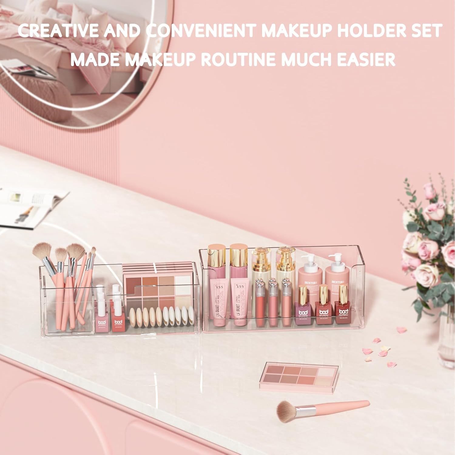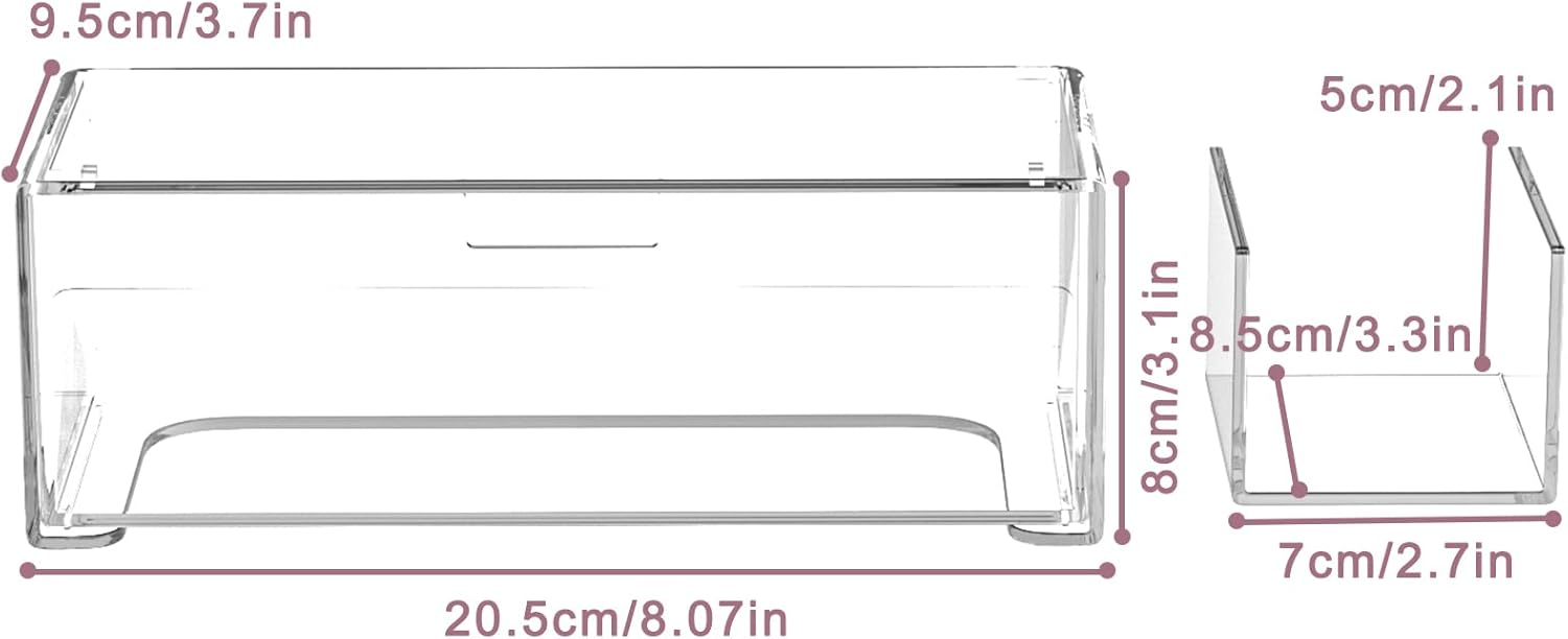 • DESKTOP ORGANIZER WITH DRAWERS: thanks to its two-in-one design, our clear organizer drawers storage box can be used as a drawer box to keep your daily essentials well organized and dustproof, or separated into two open storage holders without lids. This bathroom drawer organizer features a crystal clear body with a sleek cover for easy access and placing the items without obstruction