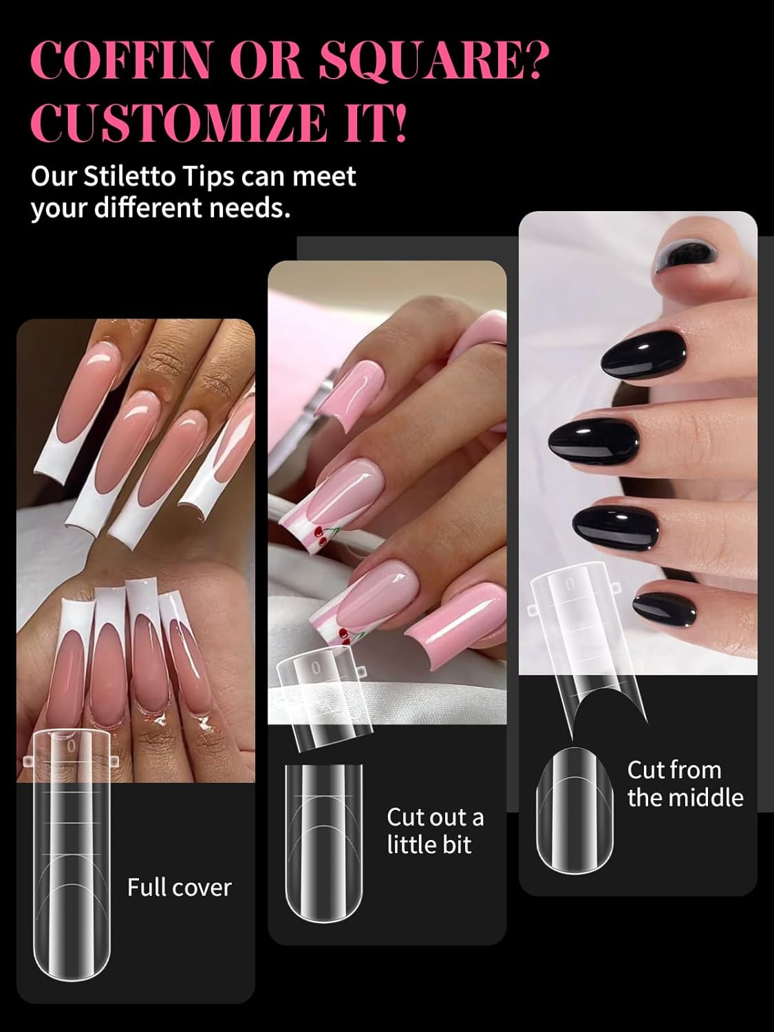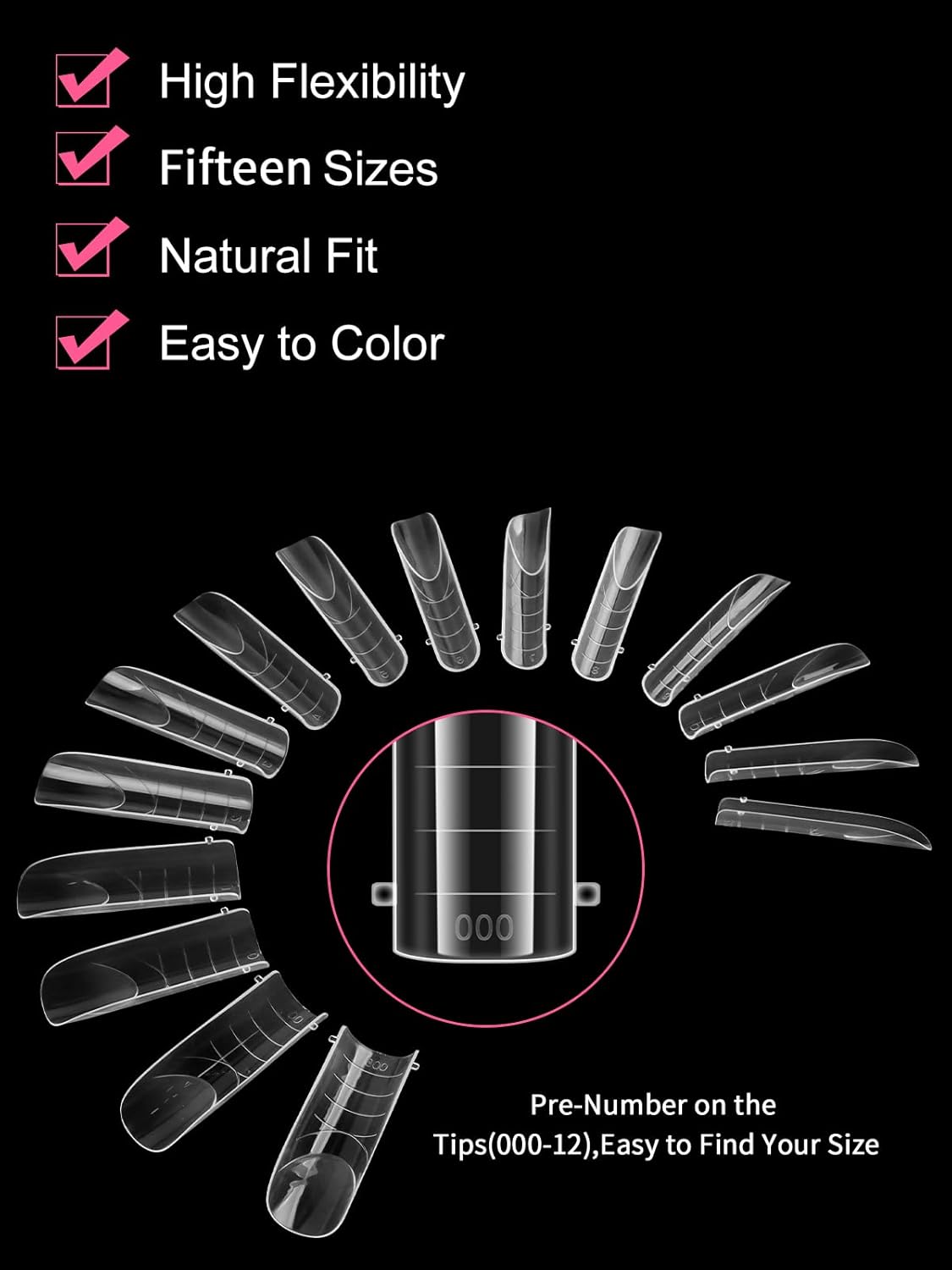• 【Nail Form Mold with 15 Sizes】150pcs stiletto clear dual forms for poly nail gel offers 15 different nail sizes , and each size of long nail tips is separated by a small grid, a total of 15 grids, so they're easy and convenient to choose the suitable size to meet your nail's need.