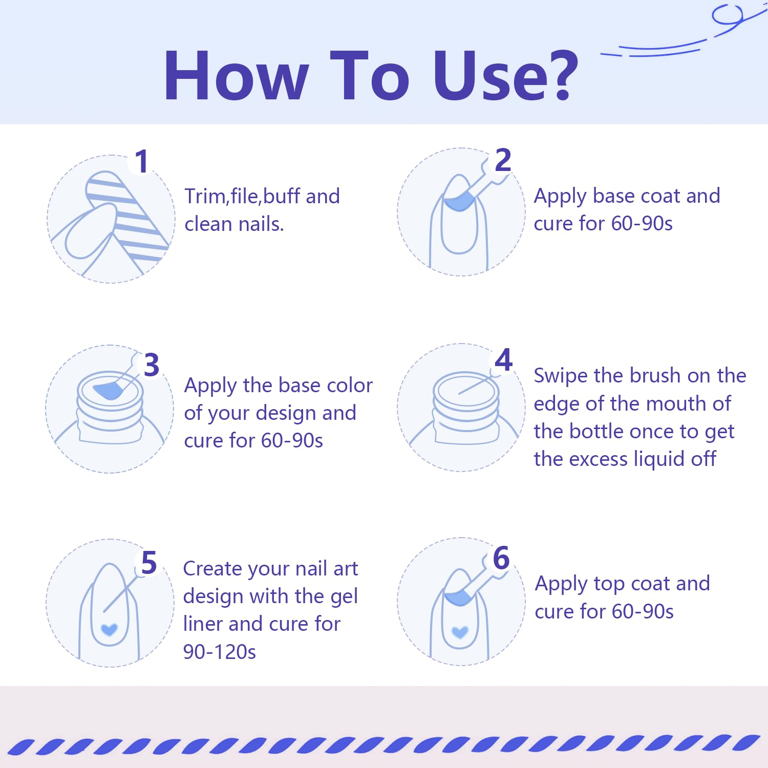 • You’ll Received:10Pcs Nail Art Gel Liner Paint Set.With the built-in thin brush, you don't have to get out your set of brushes for adding details and lines. of nail manicure decoration, especially for nail art manicures. It not only creates a gorgeous momentum for your nails.