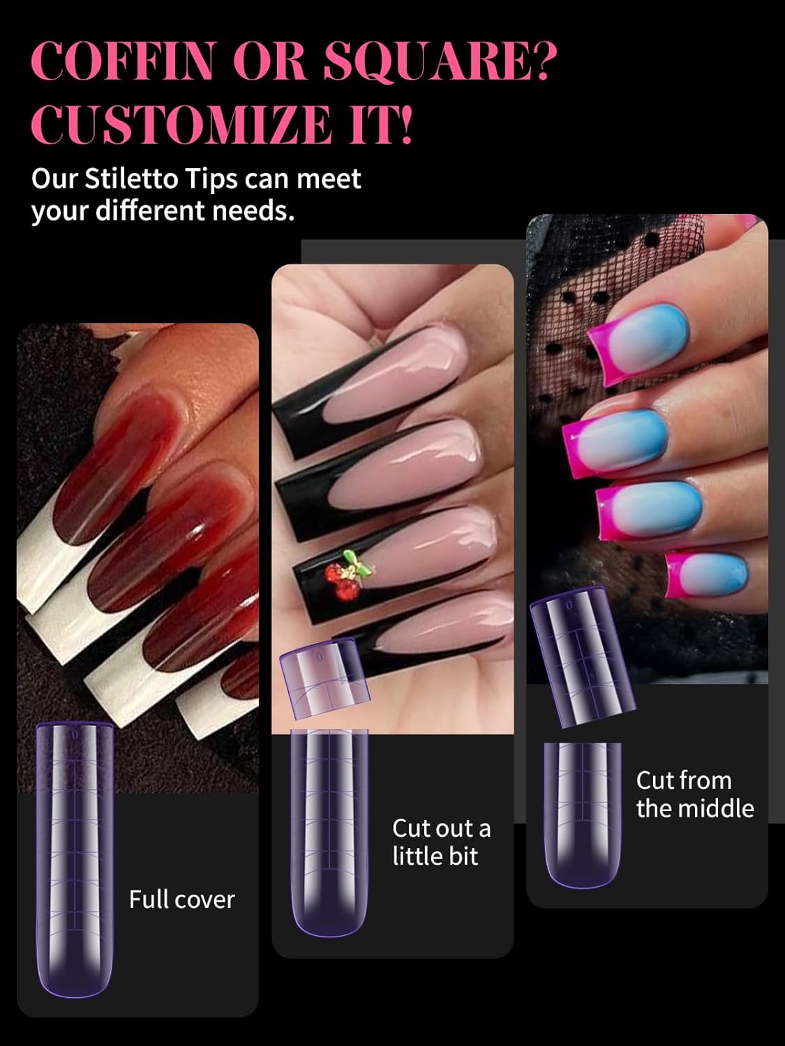 • 【Sturdy No C Curve Gel Nail Forms】Reusable extra long nail molds are made with high quality material, which is strong, tough, and reusable, providing you with a different lengths nail art experience that lasts.This artificial nails forms protective sleeve has a small handle on both sides, which is convenient for constructing gel nail extension nails, and will not stick to your hands, and can be easily removed after application.