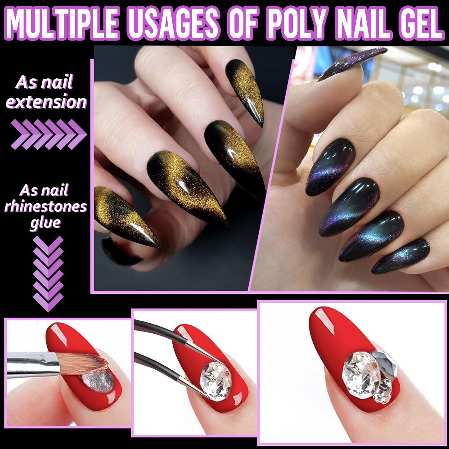 • 【Wide Application & High Gloss of Poly Gel Kit】You can use cat eye poly nail gel kit for poly gel nail, nail sculpting, nail art with rhinestone and other artistic creations of the nail extension gel kit to make you stand out from the crowd by this poly gel nail kits. Magnetic poly gel flash colors in poly gel nail kit, this poly gel extension nail kit is the perfect gift for all nail lovers with an even better color system.