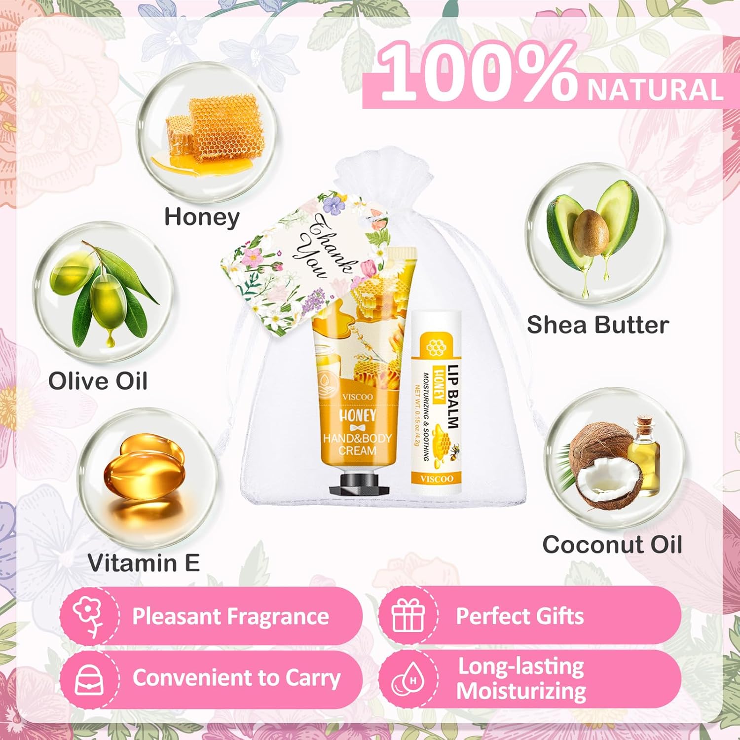 • 【Suitable for Various Occasions】Our lip balm and hand cream set is perfect for thank you themed party events, it is ideal gifts for women, guests, mothers, coworkers, teachers, nurses and cna week gifts. They are perfect bridal shower favors, wedding party favors, baby shower favors, Thanksgiving gifts, Christmas gifts, ,Easter basket essentials, Mothers day gifts,teacher appreciation gifts, etc.
