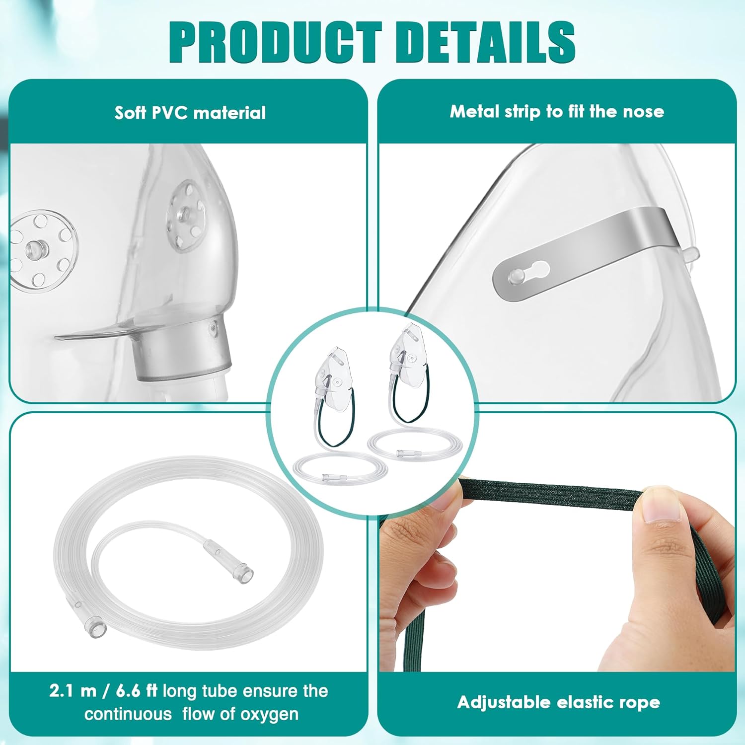 • Versatile Compatibility & Secure Fit: Engineered with an adjustable elastic head strap and customizable nose clip, this oxygen face mask accommodates diverse head sizes while maintaining airtight sealing for reliable oxygen delivery. The oxygen mask with tubing includes a 6.6 foot reinforced anti kink tube, providing ample mobility without compromising flow consistency, whether seated or resting in home environments