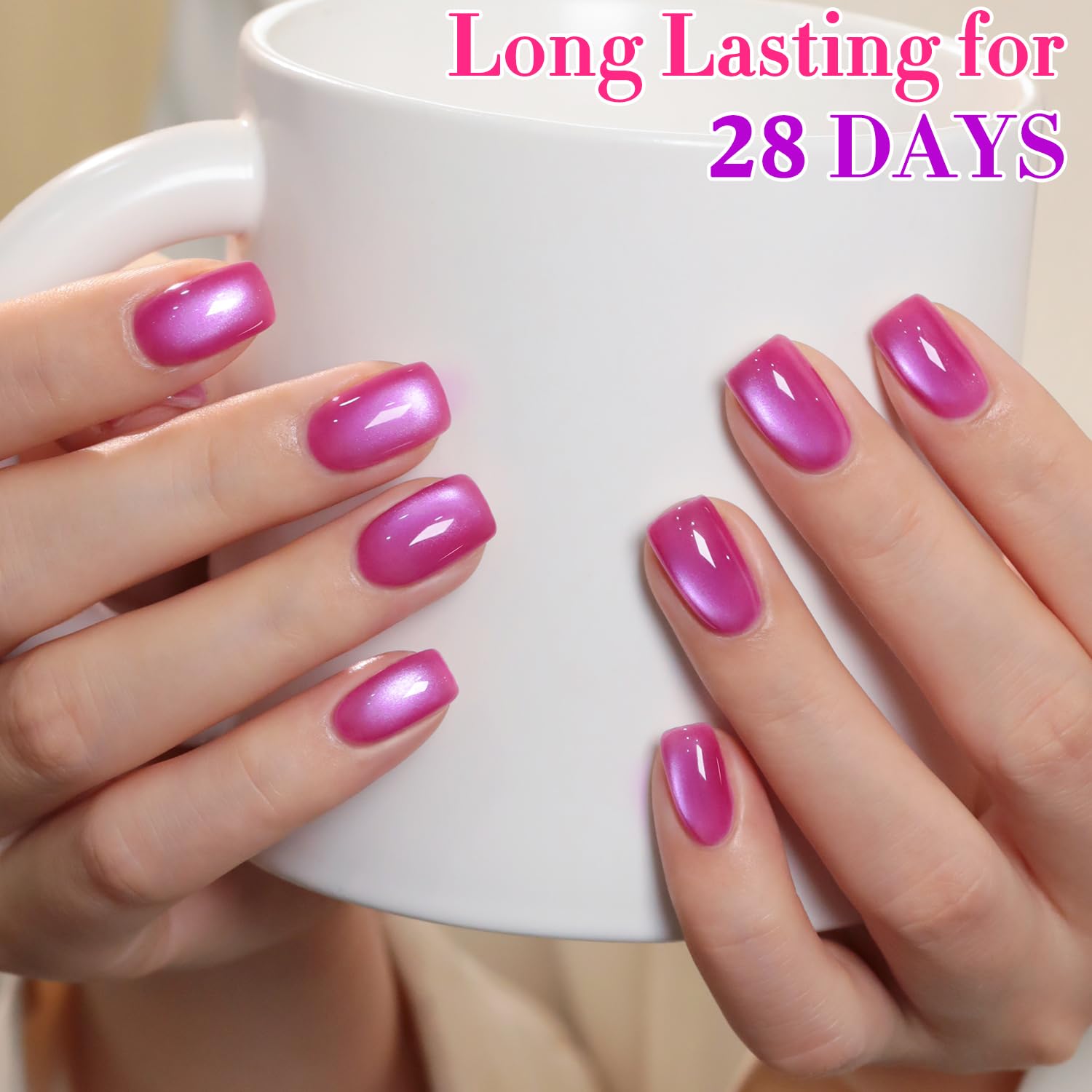 • Cat Eye Gel Nail Polish : Double Rhythm cat eye gel nail polish kit includes 1 color 15ml / 0.5 fl.oz gel nail polish. The cat eye gel can be combined with different bacse colors arbitrarily, you can get different colors nail art.You can use different base coat to creat different sytles.