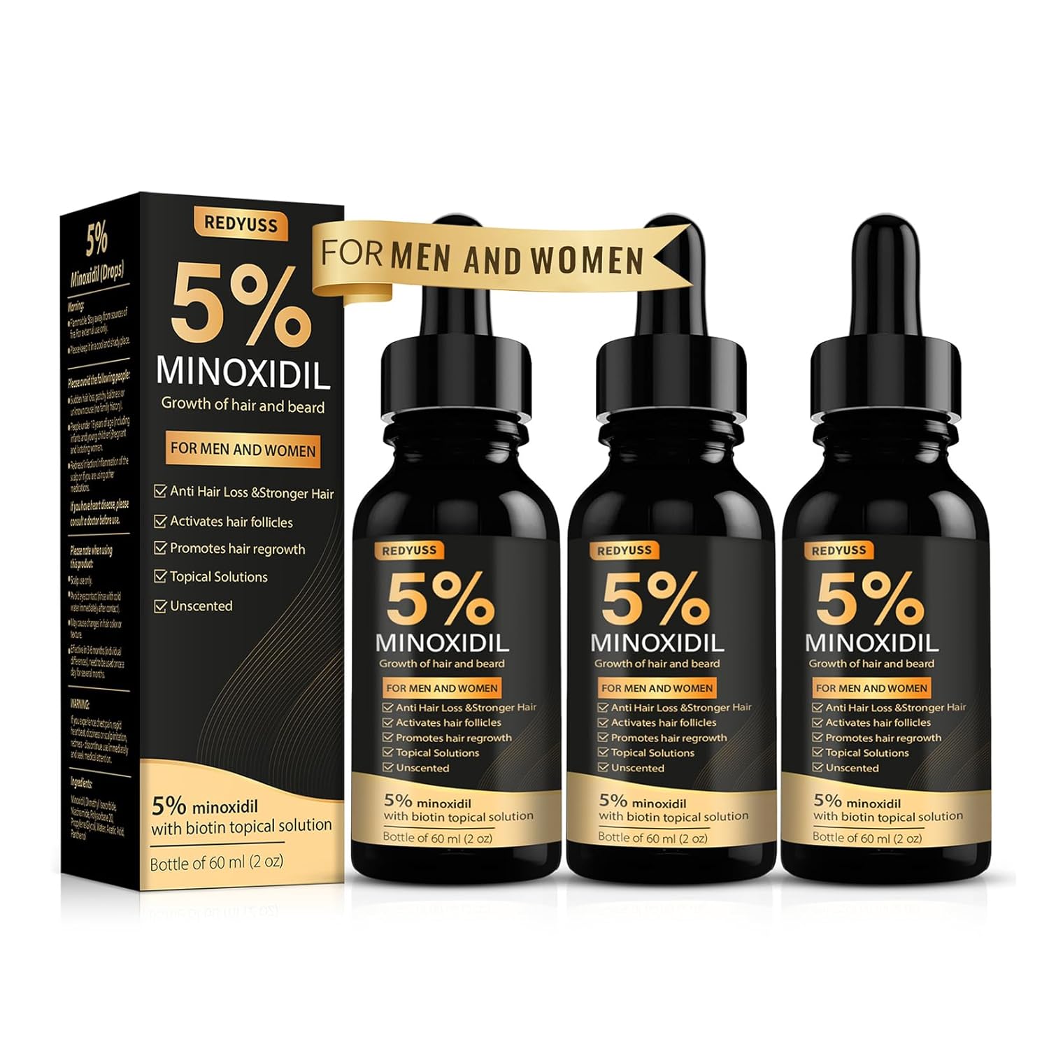 5% Minoxidil Hair Growth Serum Minoxidil Biotin for Hair Beard Growth Prevent Hair Loss for Thicker Longer Fuller Healthier Hair Men and Wome 3 Bottles of 2oz