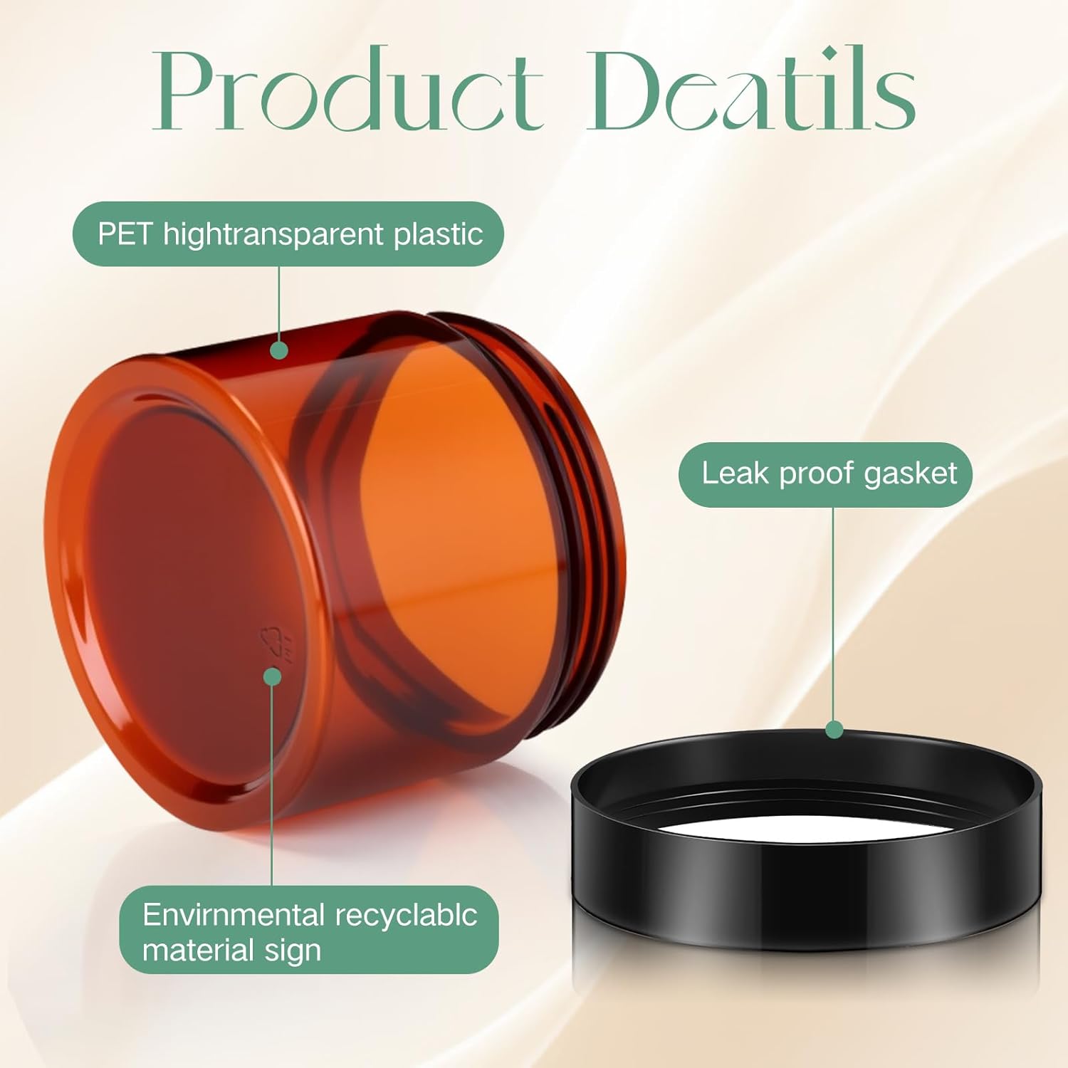 • Leak Proof and Seal: 6 oz plastic jars provide good protection for your cosmetics when the lid is screwed securely, avoiding inner contents to leak, suitable for thick liquid, paste, solid and other beauty and body products or other small items that need to be stored separately