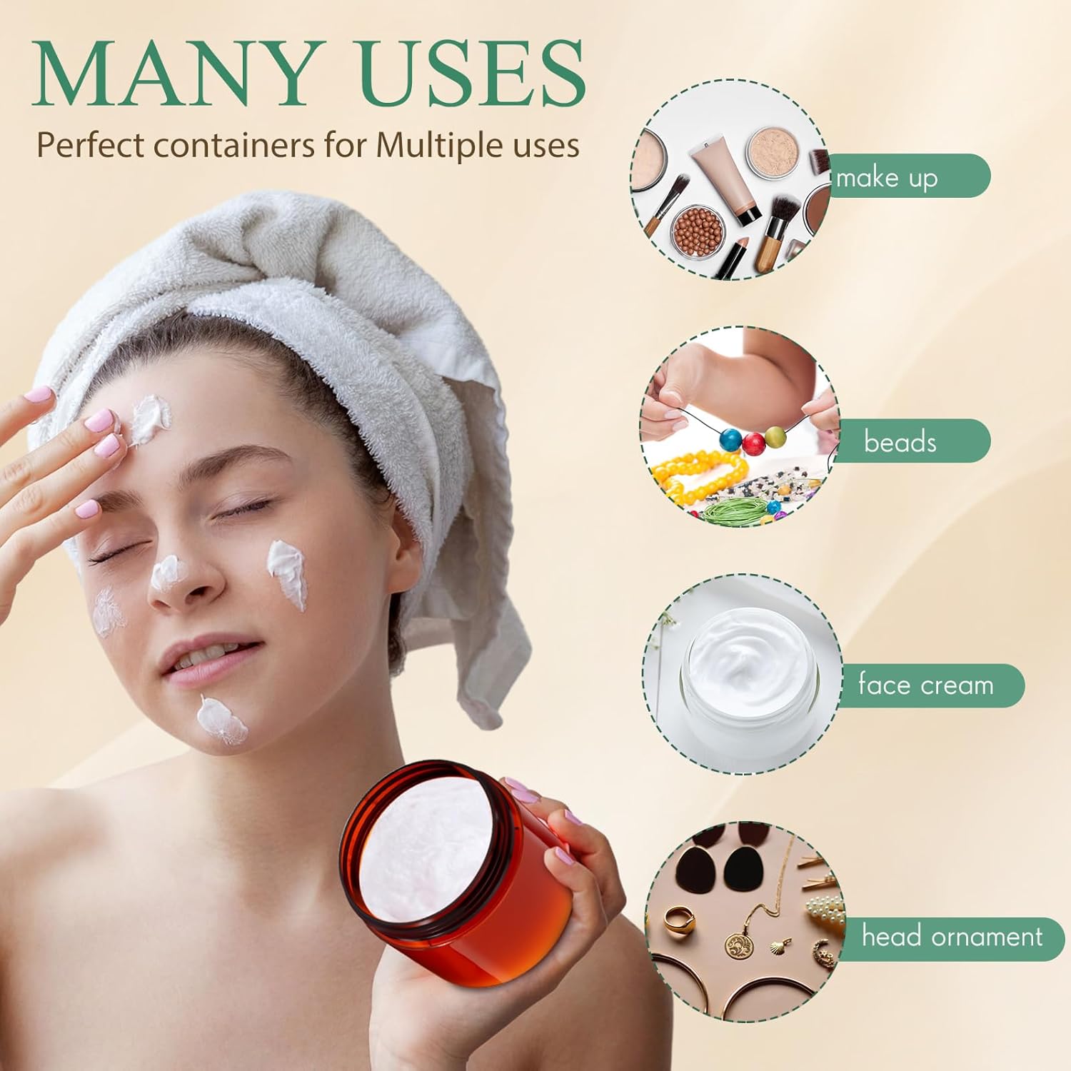 • Multifunctional Containers: you can use these plastic jar containers with lids to store your personal beauty products for travel, ideal to dispense; You can also use it to store homemade sugar scrub cream, body lotions, bath butter soap gifts, body butters and hair moisturizers, small and easily lost jewelry, small crafts like beads, seasonings, acrylic paints, flower seeds, rhinestones etc., which will keep your things organized and make your life more convenient