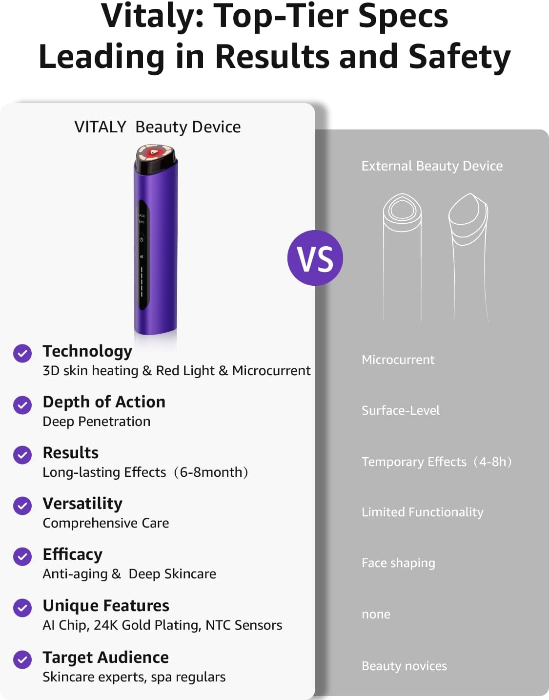 • Unlock Your Best Skin: Maximize your product benefits and transform your skin's health with the VITALY Beauty Device. Proper usage is essential for optimal results. Before use, especially if you have sensitive skin, recent treatments, or ongoing medical care, consulting a healthcare professional is crucial to avoid potential adverse reactions