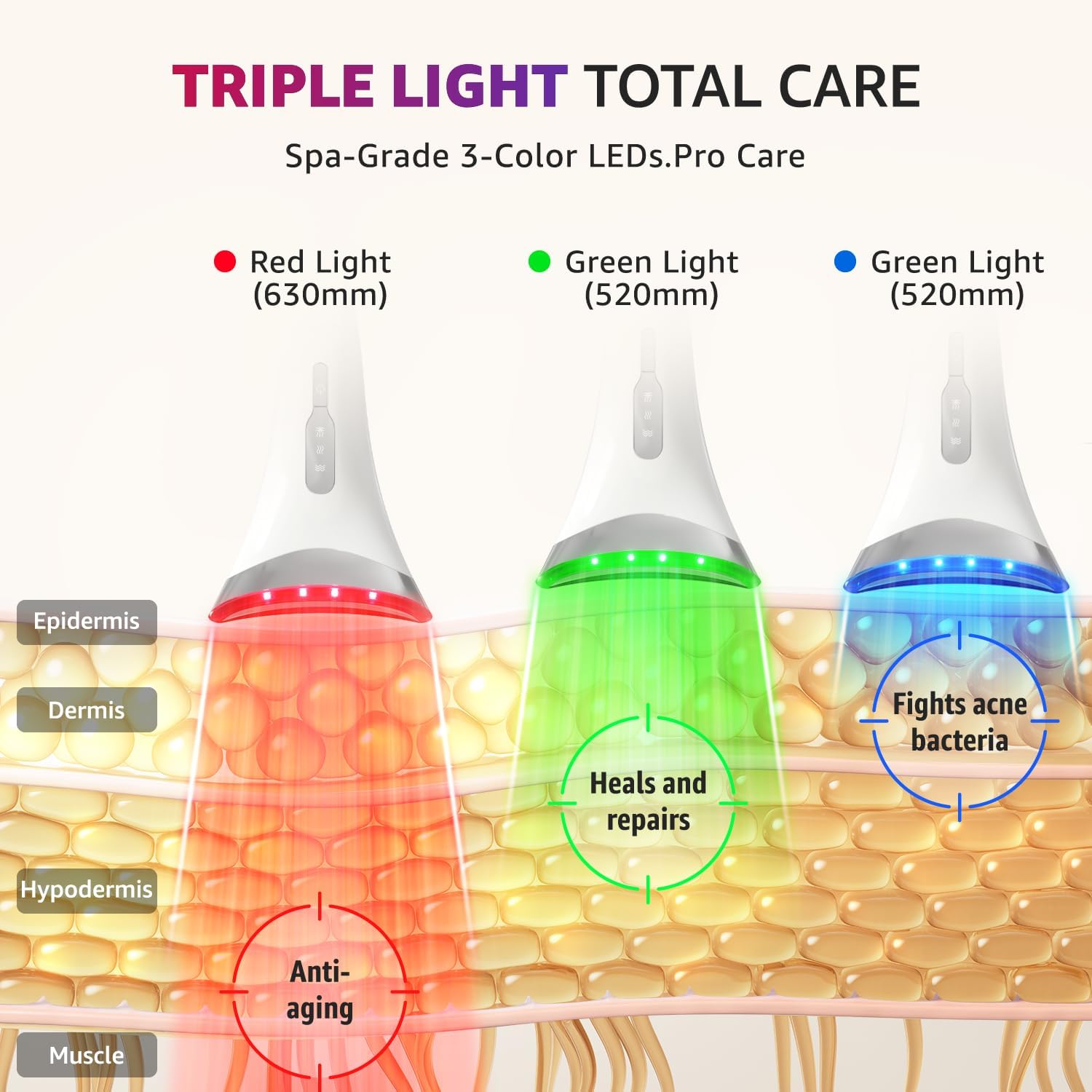 • Red Light Therapy for Anti-Aging Power: Harness the rejuvenating benefits of red, blue, and green light therapy to reduce wrinkles, combat signs of aging, and promote radiant skin. Our skin tightening device uses advanced light technology combined with soothing vibrations and heat, delivering professional skincare results from the comfort of your home.