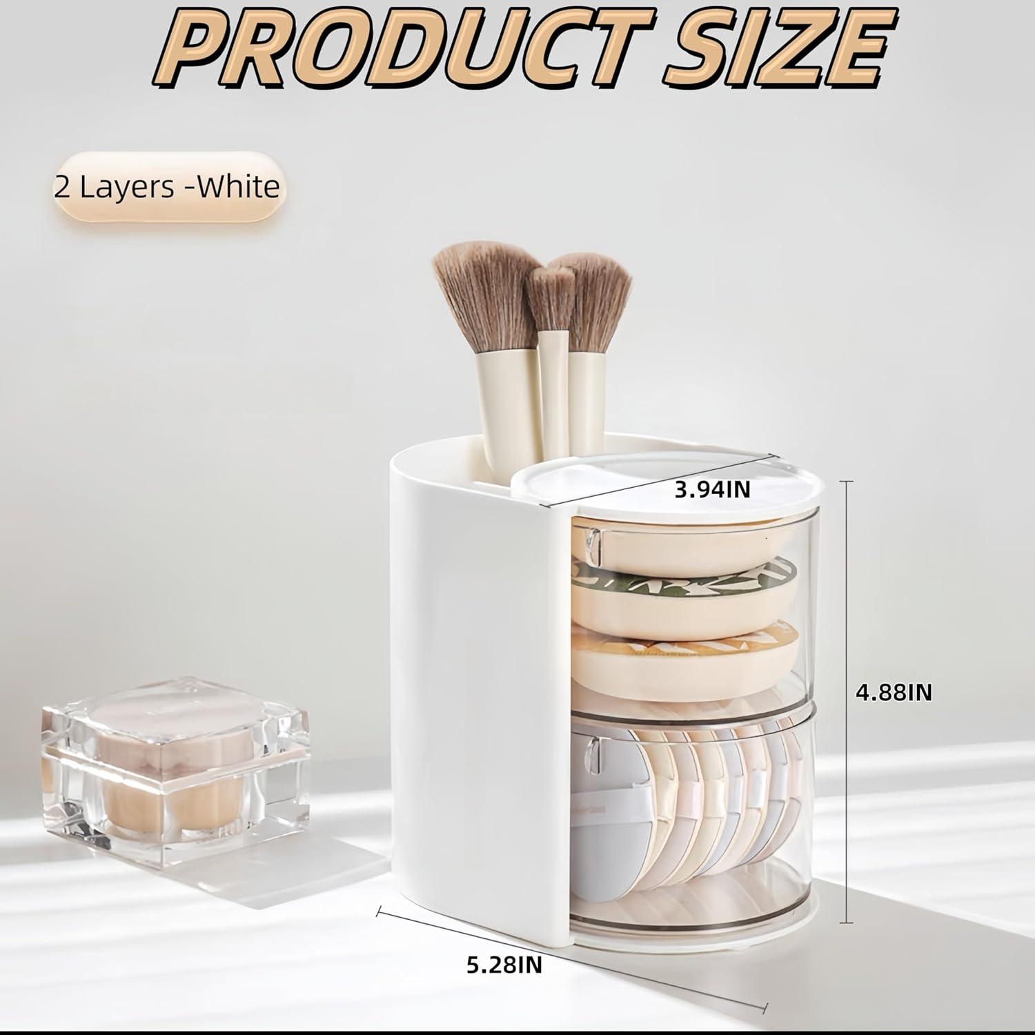 • ✅【Rotatable Design】The hairbrush holder organizer unique 180° rotatable design allows you to quickly find the powder puff, beauty egg, cotton swab or hairpin you need with just a slight turn, without the hassle of searching, saving you makeup time
