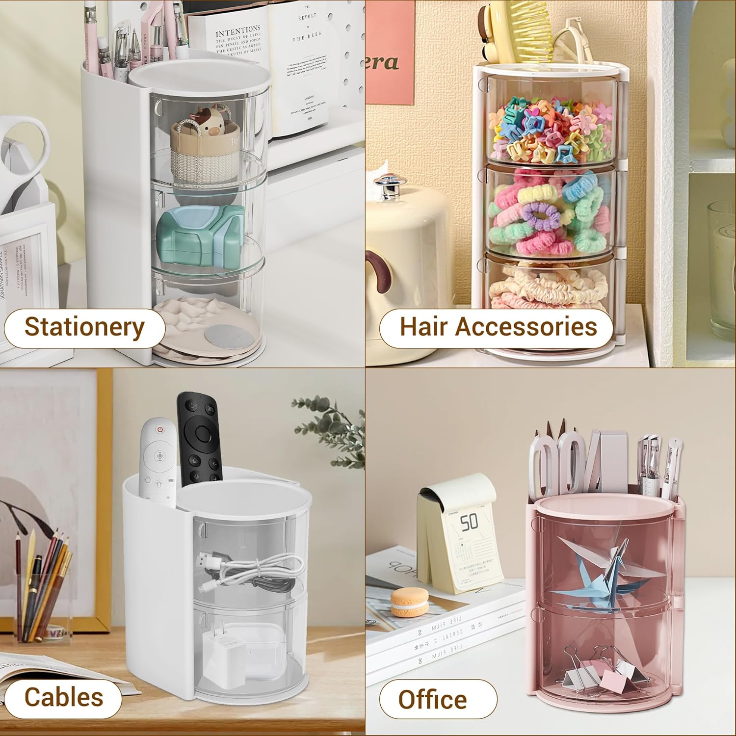 • ✅【Rotatable Design】The hair brush holder unique 180° rotatable design allows you to quickly find the powder puff, beauty egg, cotton swab or hairpin you need with just a slight turn, without the hassle of searching, saving you makeup time