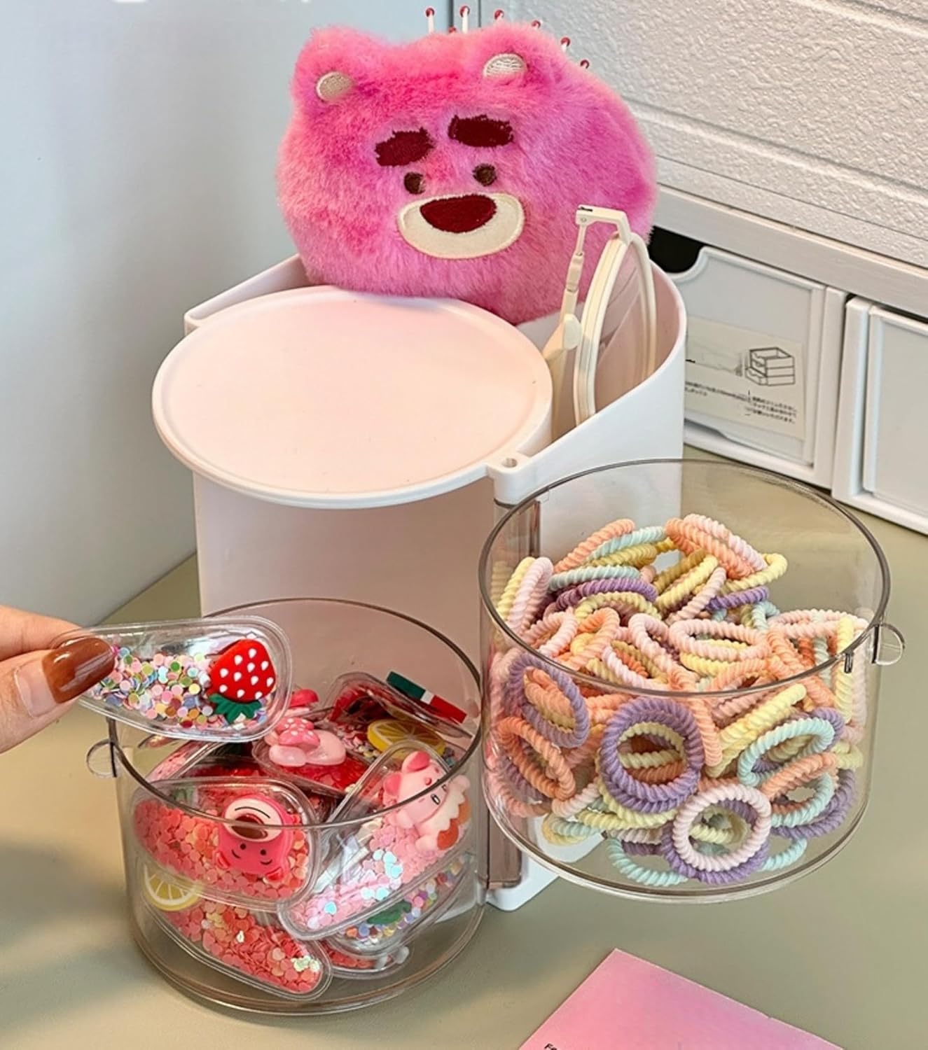 • ✅【Simple and Practical】 The hair tie organizer two-grid design on the top can be used to store different types of items, keeping the desktop neat and tidy. This design is not only convenient for temporary storage of daily necessities, but also can be used at any time, providing great convenience and flexibility for your life!