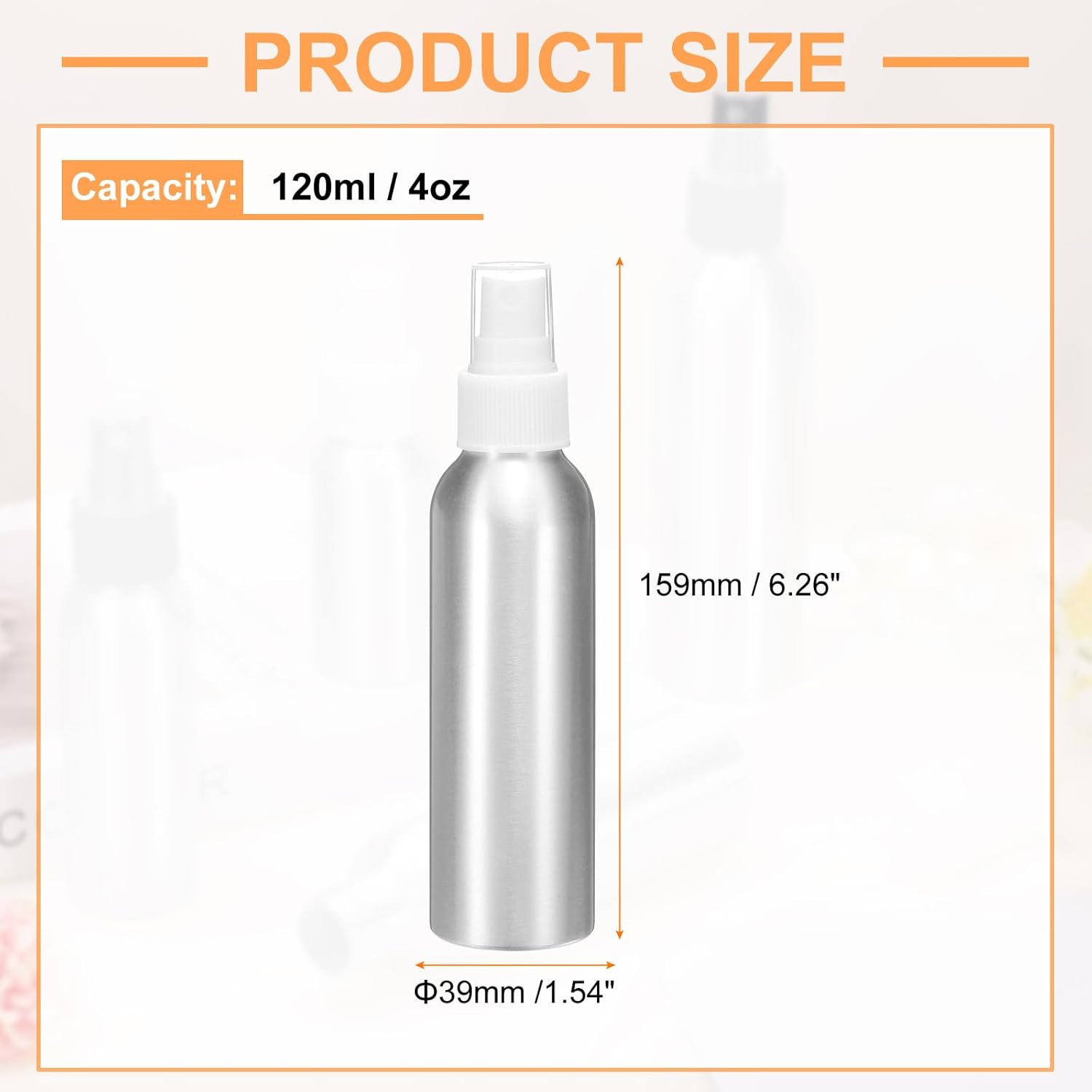 HARFINGTON 5pcs Aluminum Fine Mist Spray Bottles 120ml/4oz Metal Small Liquid Alcohol Refillable Travel Container with White Plastic Nozzle Cap for Perfume Skincare Cosmetic Storage Bottle