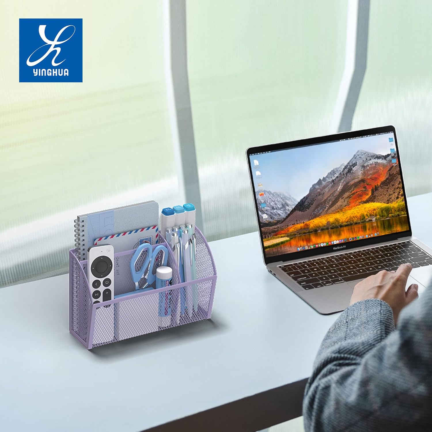 • Strong Magnetic Grip for Multi-Surface Use – This Purple 3-compartment metal mesh desk organizer securely attaches to whiteboards, refrigerators, lockers, and other magnetic surfaces with its powerful built-in magnets. The sturdy hold keeps your pens, pencils, and small essentials in place while freeing up desk space. Perfect as a pen holder for desk, office organizer, or classroom pencil holder