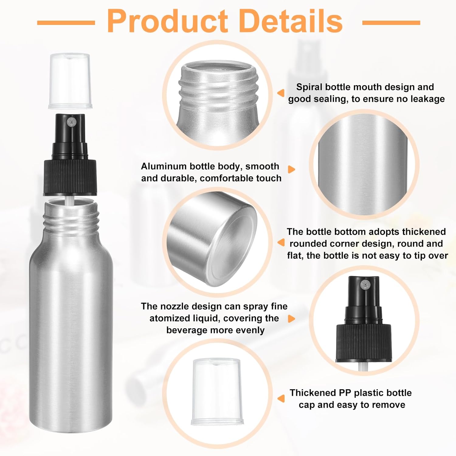 • Material - This metal spray bottle is made of PP and aluminum, which is comfortable to touch, safe to use, easy to disassemble and wash, and can be reused