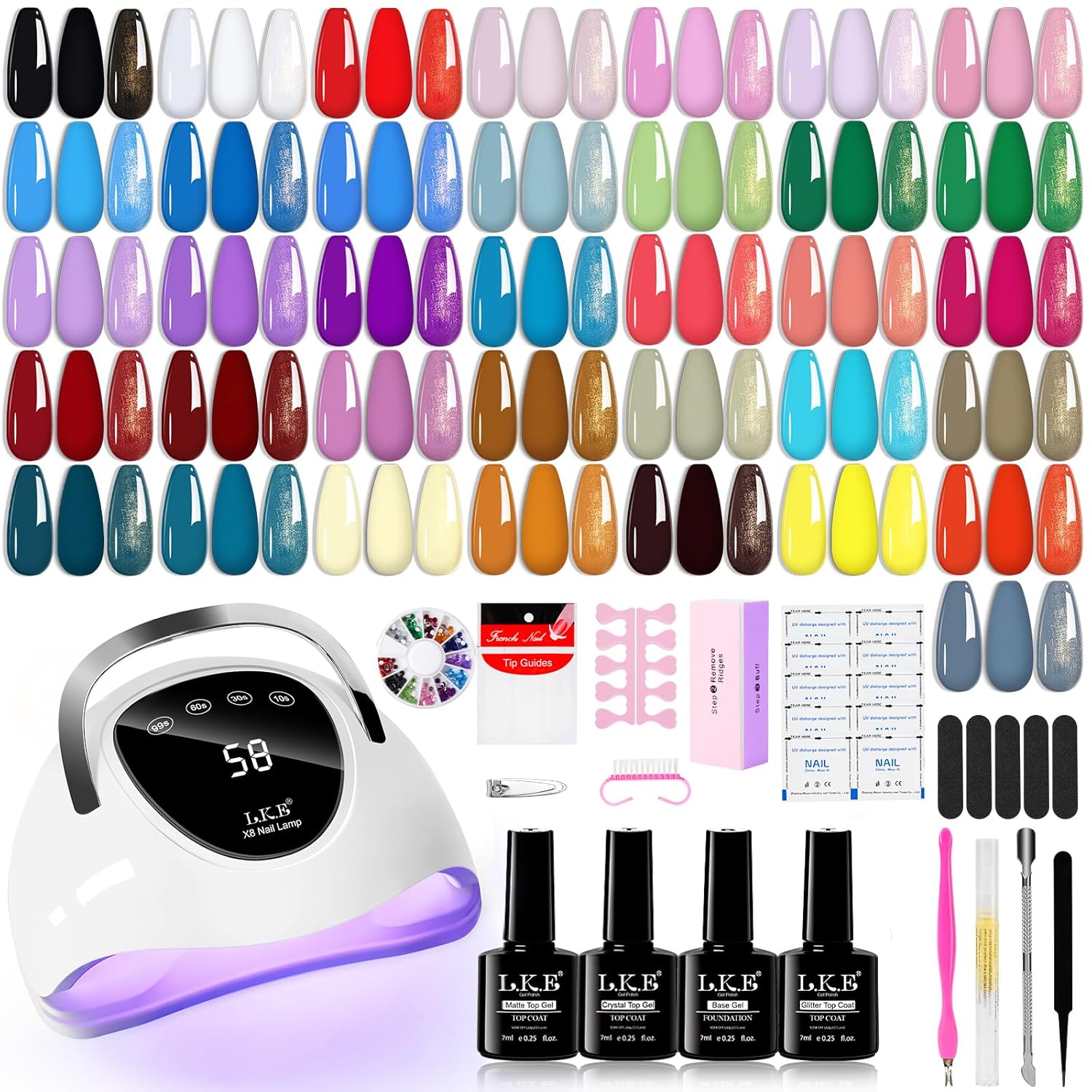 LKEE Gel Nail Polish Kit with U V Light 108W, 65 Pcs Gel Nail Polish Set All Season Gels Nail Kit Essential Manicure Tools for DIY Nails Art Gifts for Women (36KIT-color 1)