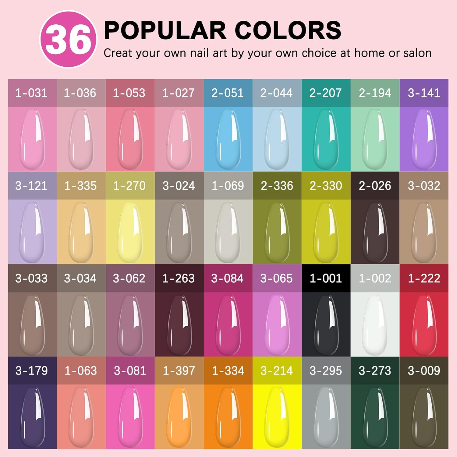 • 【Easy Application & Long lasting】Our Gel Nail Polish with UV Lamp Set includes all the tools you need for a complete manicure, allowing you to easily create your own nail art. With 36 carefully selected colors, you can mix and match according to your mood and ideas, including black, white, green, yellow, pink and more. Following the instructions in our manual, you can enjoy up to 28 days of flawless, chip-resistant nails.