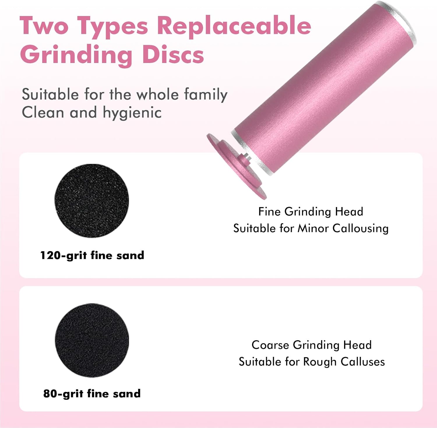 • 2 Grinding Heads: The electric callus remover has two roller heads: a fine head for daily care and a coarse head for rough skin. Choose the right head for your skin. Replacement takes just 1 minute and is easy