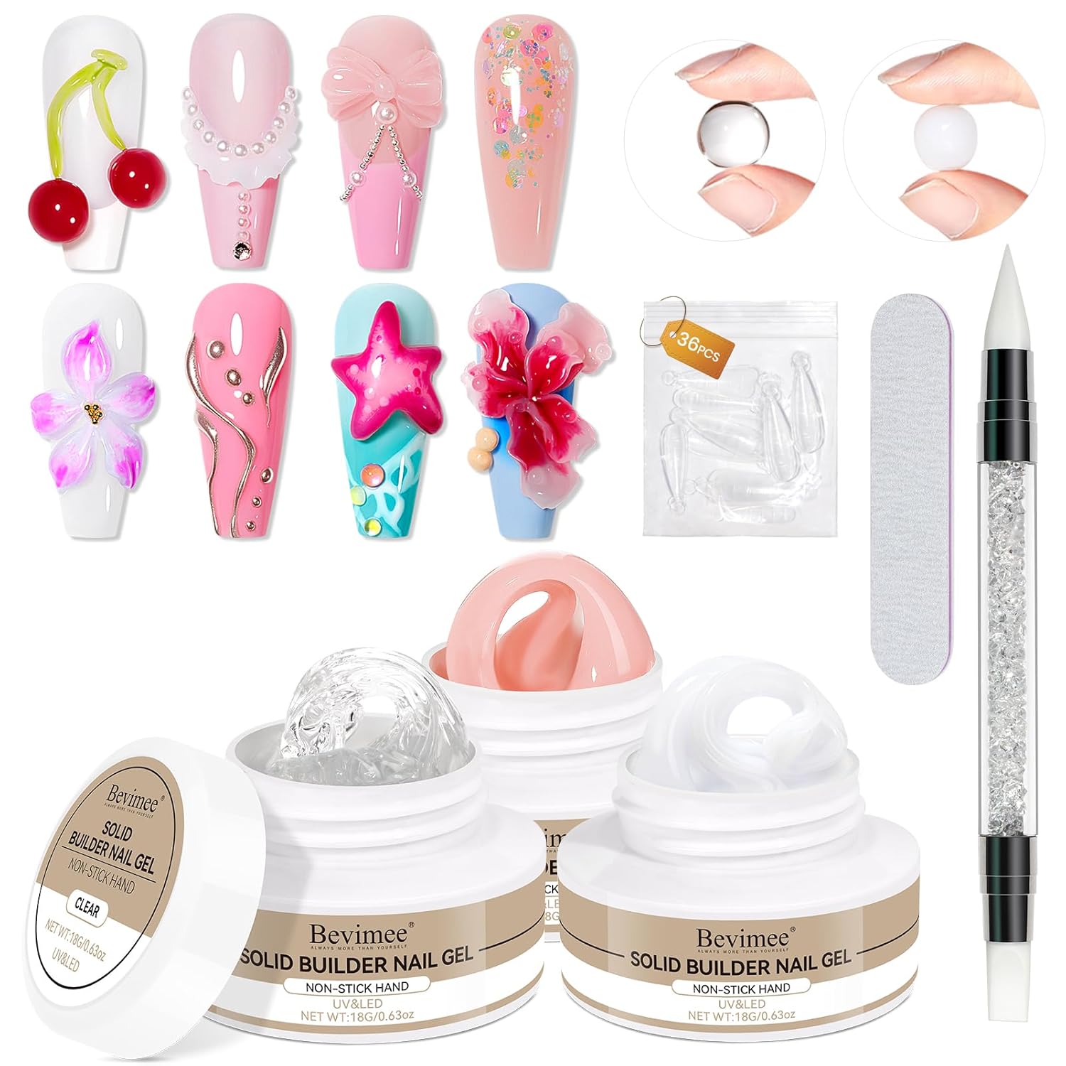• Non-Stick 3D Molding Gel: You will get 3* hard gel, clear, white and nude, 18g/0.63oz per bottle; 36pcs dual nail forms, a nail file, a dual head nail art pen, and a user manual; Save your time and money to DIY at home, quickly builds the false nails without sticking to your hands.