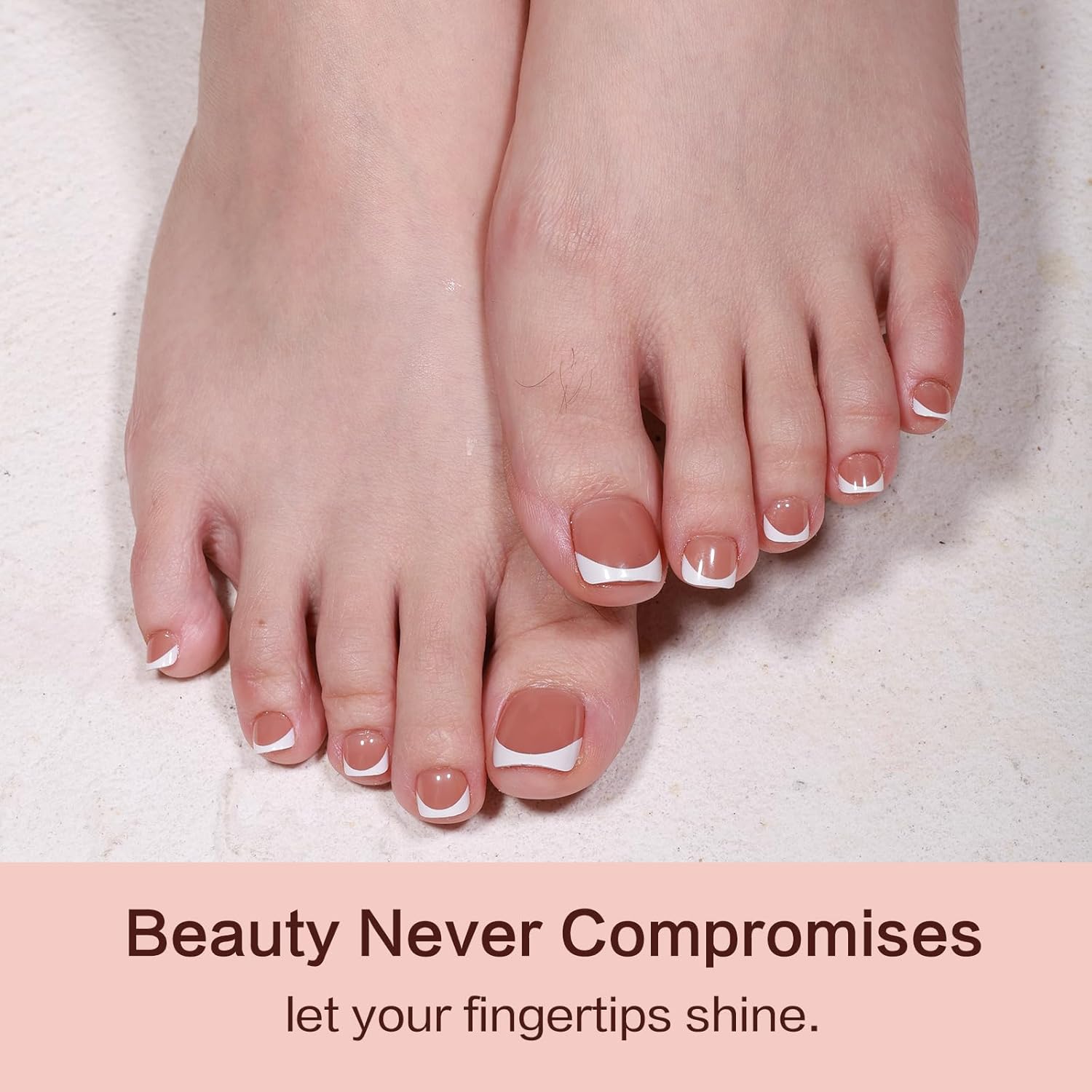 • 【Pre-Colored & Ready to Wear】GELLAKTIK’s french nude press-on toe nails feature a natural base with a glossy finish, offering a polished and feminine look. No need for extra polish—just apply with gel glue, seal with a top coat, and enjoy flawless nails in minutes. Ideal for beginners and nail art enthusiasts alike!
