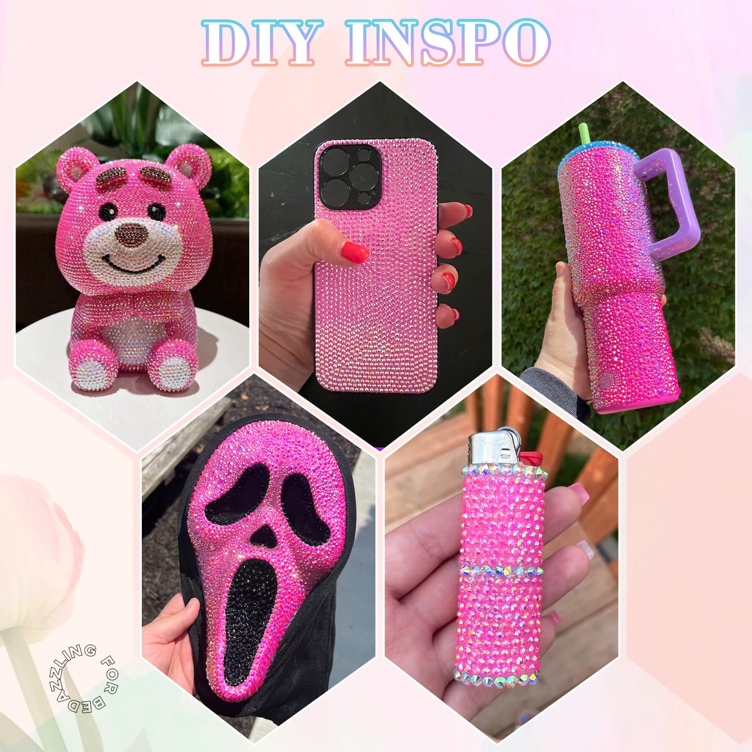 30000Pcs Resin Rhinestones for Bedazzling with 3Pcs B7000 Jewelry Glue, Hot Pink AB Flatback Gems Rhinestones for Crafting, Clothing Tumblers Mugs Shoes Fabric Decor Nail Art