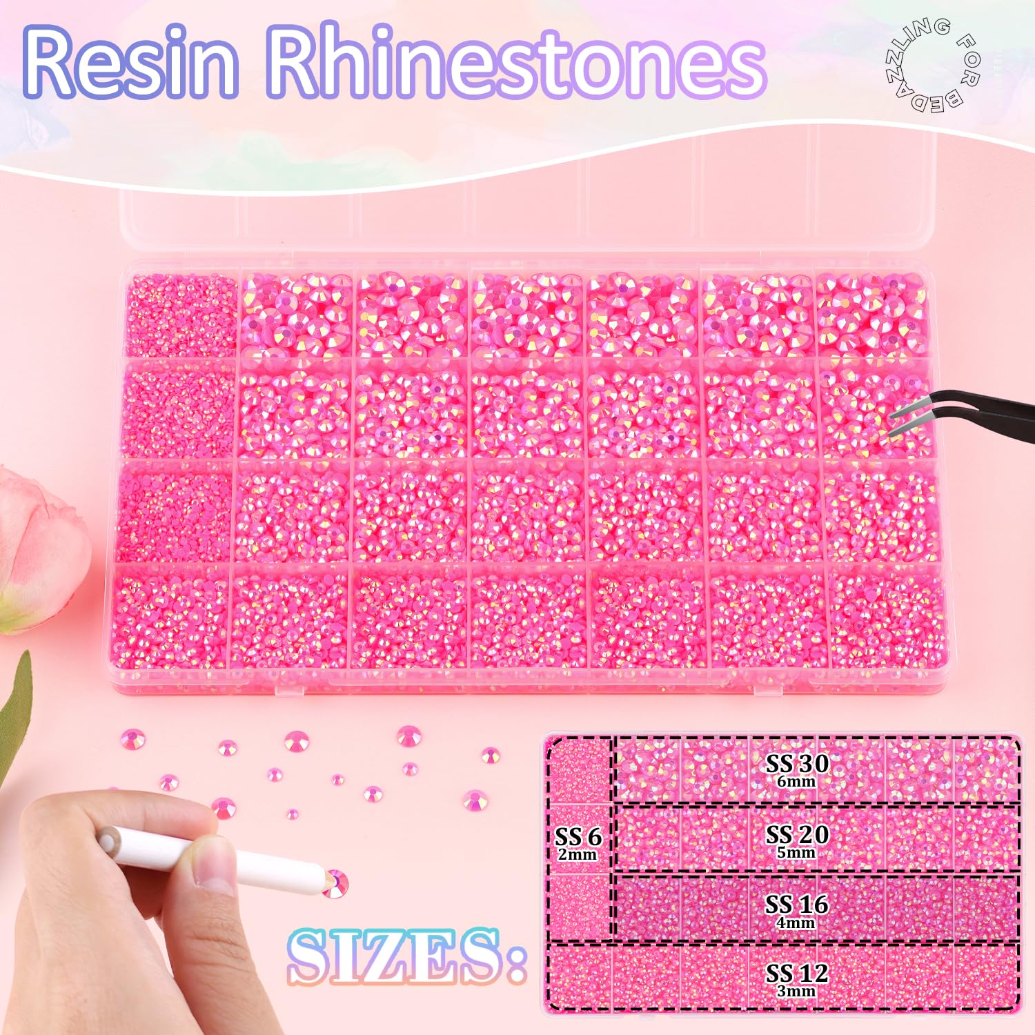 • PACKAGE CONTENT -- Include 1 box with 28 grids, featuring a variety of sizes, approx. 30000 pcs bling-out resin rhinestones (Hot Pink AB). 1 tweezers and 1 pickup pen are included for easily picking up of rhinestones. 3 B7000 glue for jewelry making