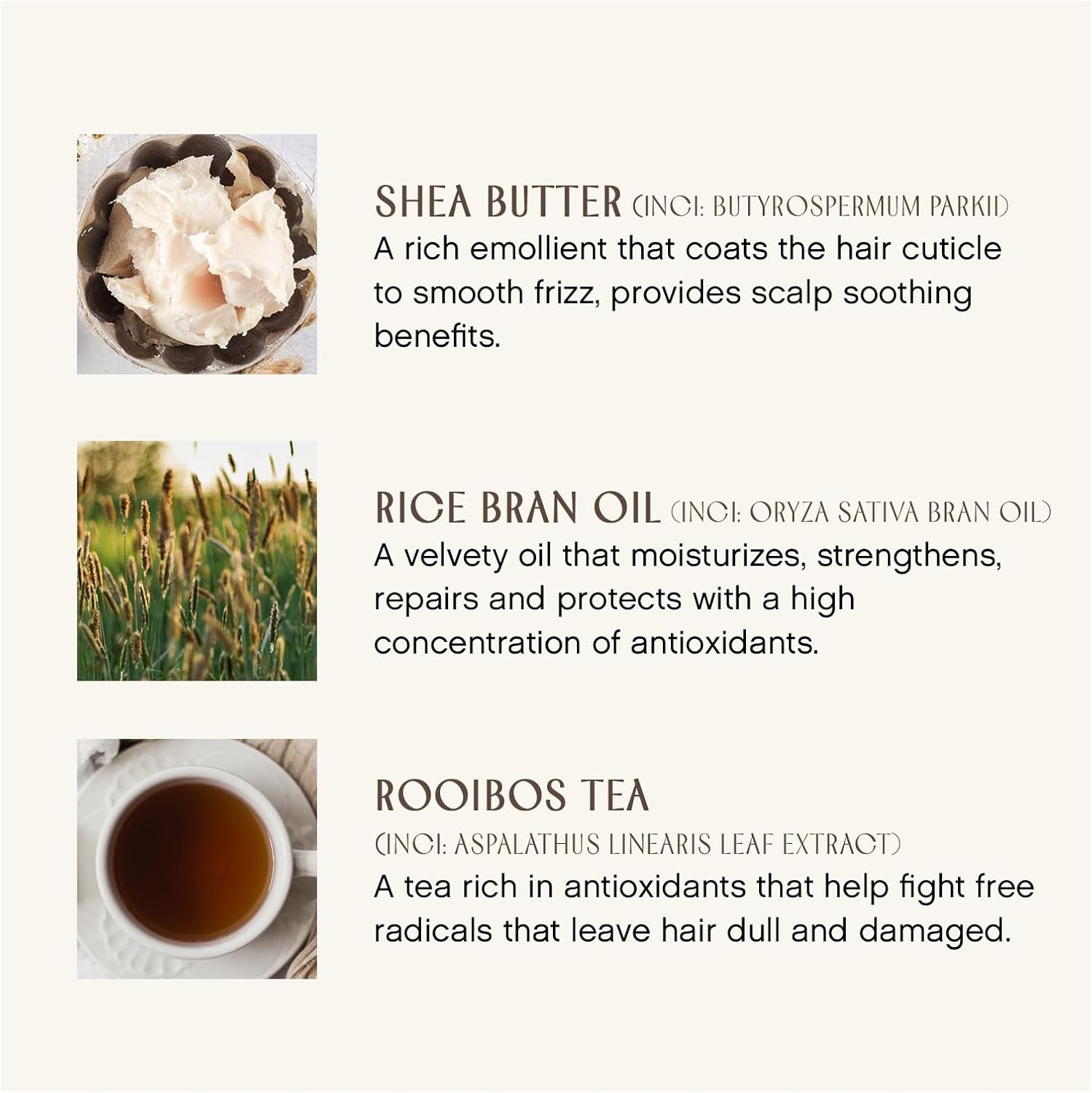 • BENEFITS: Crafted With A Rich Blend Of Organic Shea Butter, Rice Bran Oil + Rooibos Tea For Moisture + Strength.