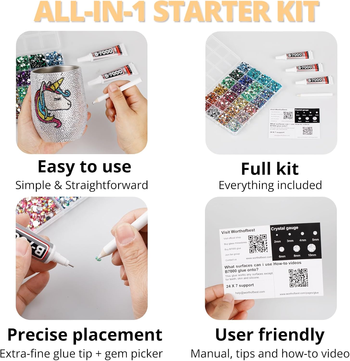 • B7000 Clear Glue for Half Pearls -- B7000 glue has strong adhesion and dries clear, waterproof when dried, non-toxic and harmless to the skin. The glue has a precision needle for easy application, they can be applied precisely