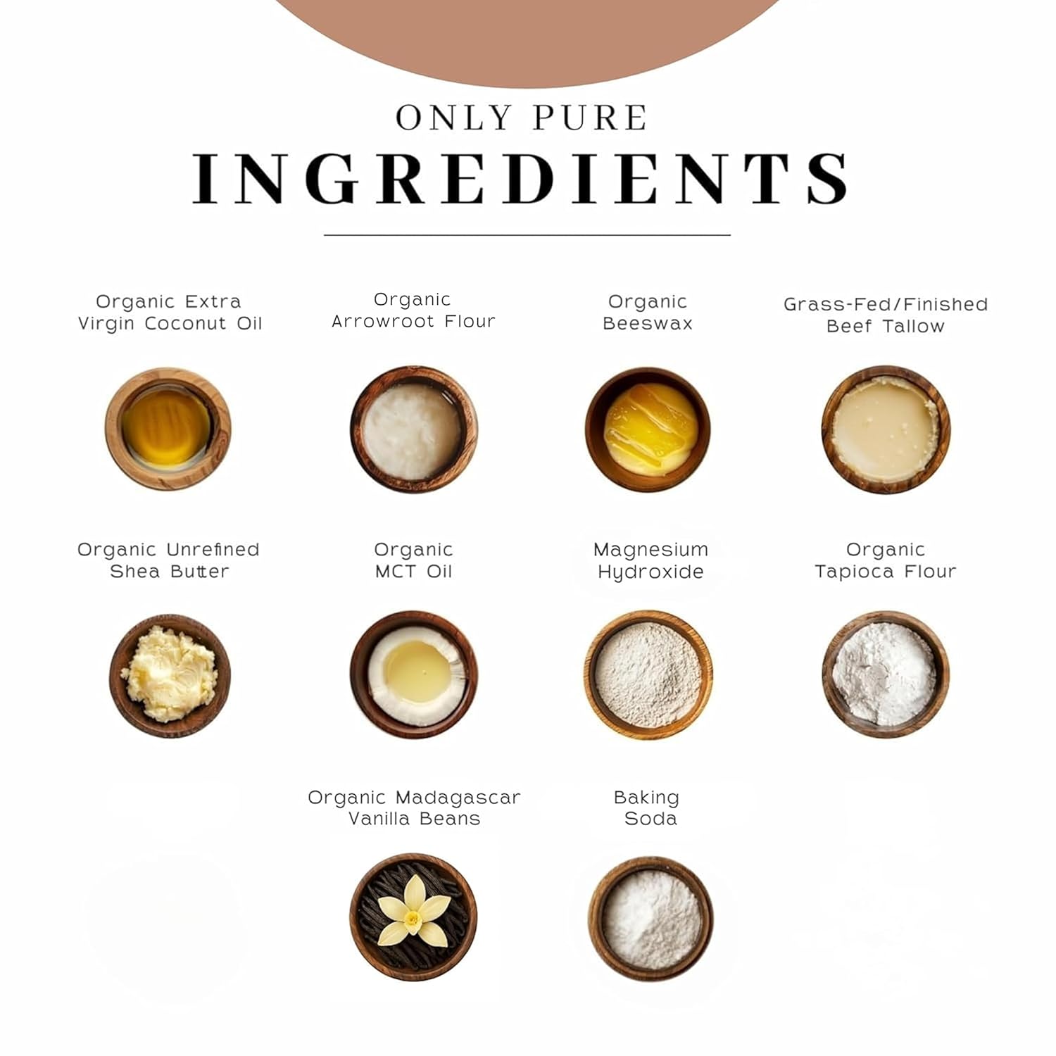 • Nourishing Natural Ingredients: Crafted with 100% grass-fed beef tallow, organic extra virgin coconut oil, unrefined shea butter, and beeswax, this formula supports your skin’s natural barrier while delivering rich hydration and long-lasting comfort.