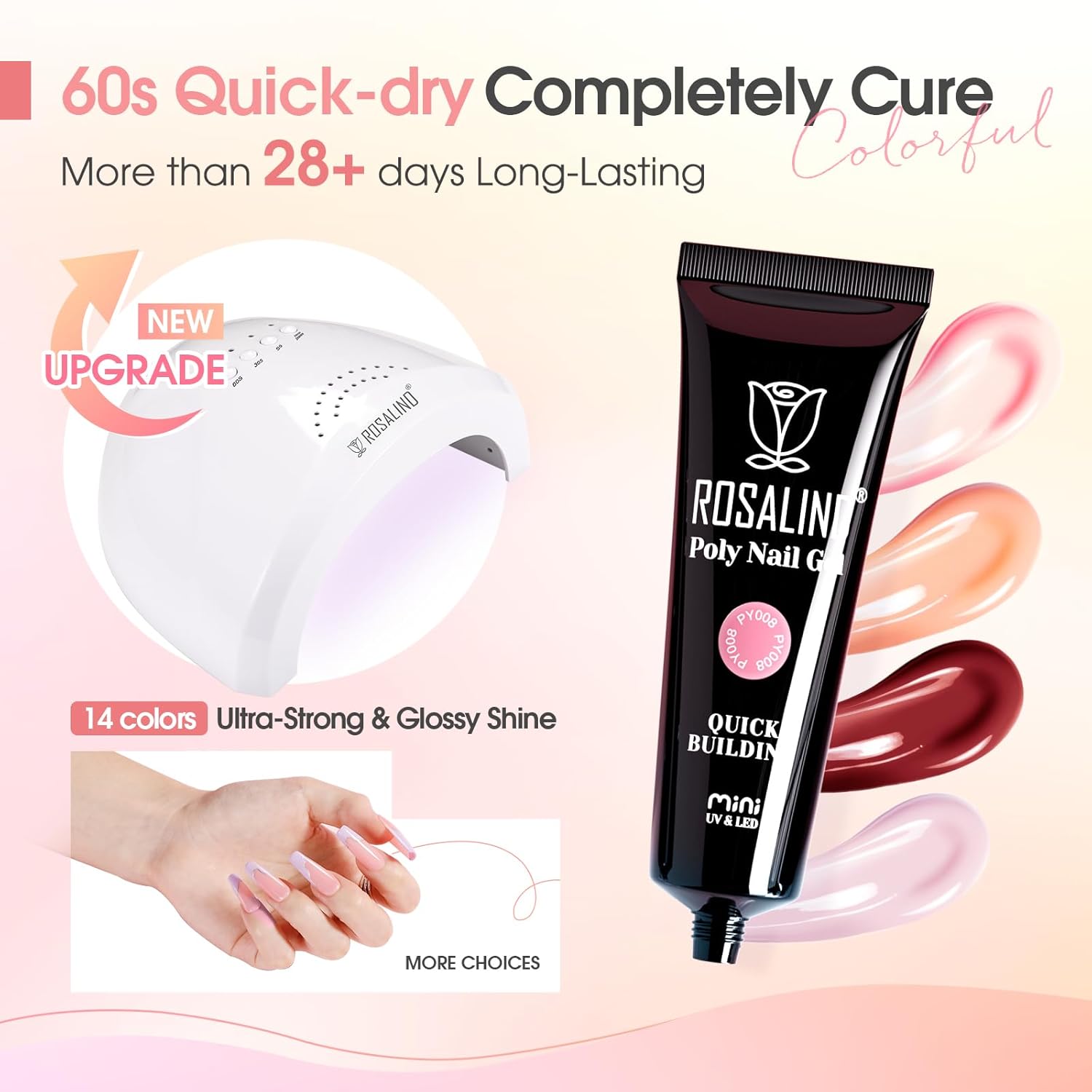 • Salon Quality & Long Lasting: ROSALIND poly nail kit is made of high quality raw materials, after strict production testing, the extension adhesive is of high quality, not easy to fall off, beautiful color, and can protect nails well