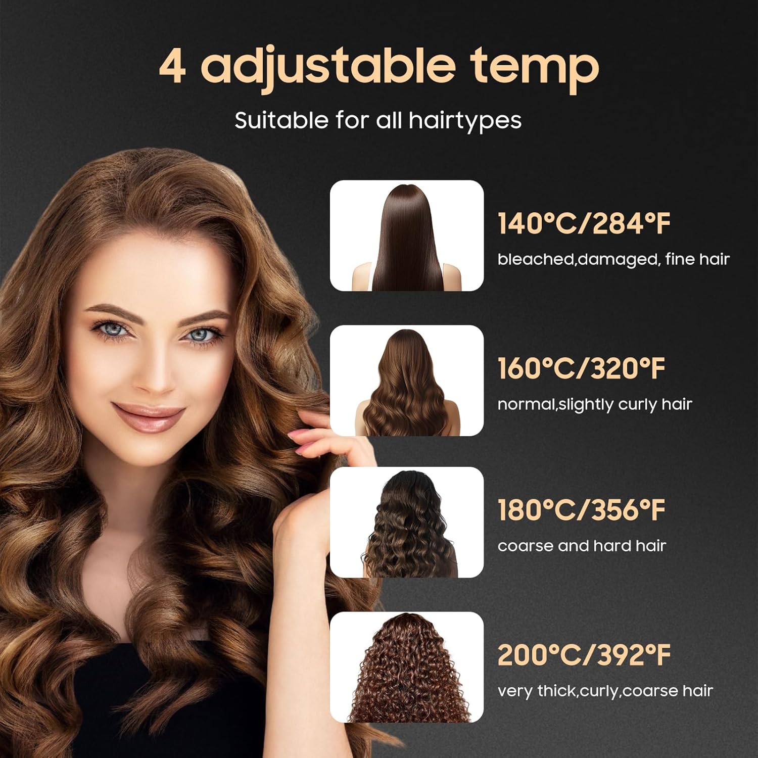 • Fast Heating &4 Adjustable Temperature Control:This cordless hair straightener heats up to 392°F in just 20 seconds, offering quick styling for busy mornings. With 4 adjustable temperature settings (284°F-392°F), it caters to all hair types, from fine to thick, ensuring salon-quality results without heat damage.