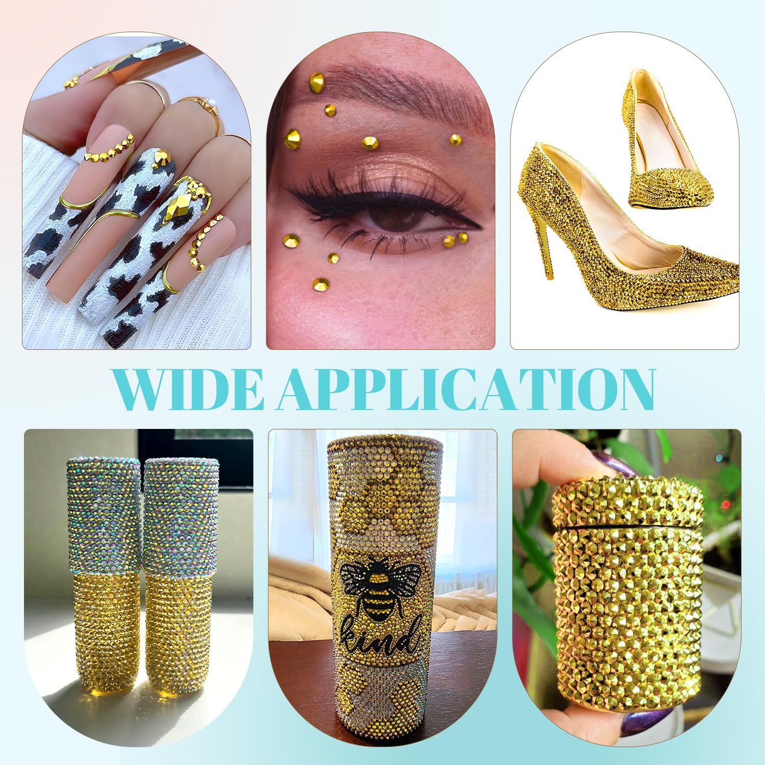 • WIDE APPLICATION -- These sparkling iridescent resin crystals are perfect for creating dazzling looks. Use them for bedazzling DIY crafts like shoes, tumblers, mugs, bottles, phone cases, popsockets, scrapbooks, photo frames, diamond paintings, greeting cards, bags, glasses, guitars, keychains, hats, masks, hair clips, bracelets, wristbands, clothing, wedding dresses, and more. Apply it to what you want to bling!