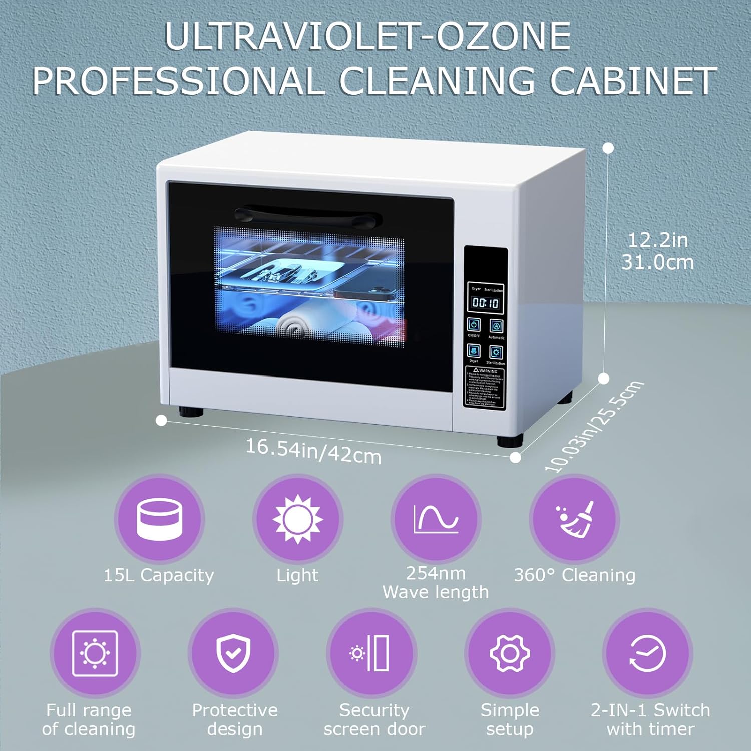 • 15 L Large Capacity Light Cleaning Box: With a spacious interior, you can accommodate your phone, cutlery, toothbrushes, towels, nail salon tools or barber equipment and so on. Ideal for high-demand environments, the manicure cleaning box saves time and ensures all your tools are disinfected in one cycle. The nail tool cleaner box like having a personal sanitizing station that handles bulk cleaning quickly and efficiently